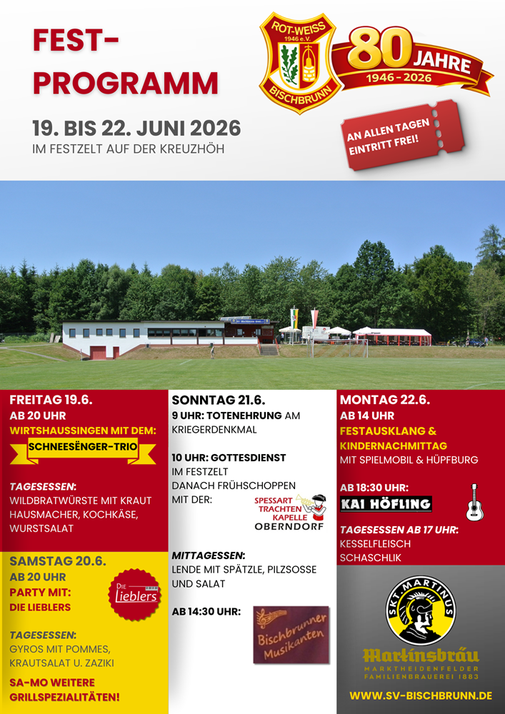 Der Sportverein Rot-Weiß Bischbrunn e. V. wurde offiziell am 19.10.1946 gegründet.