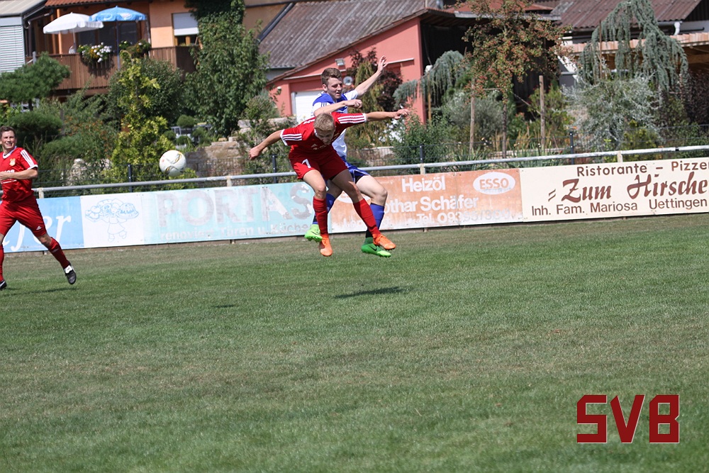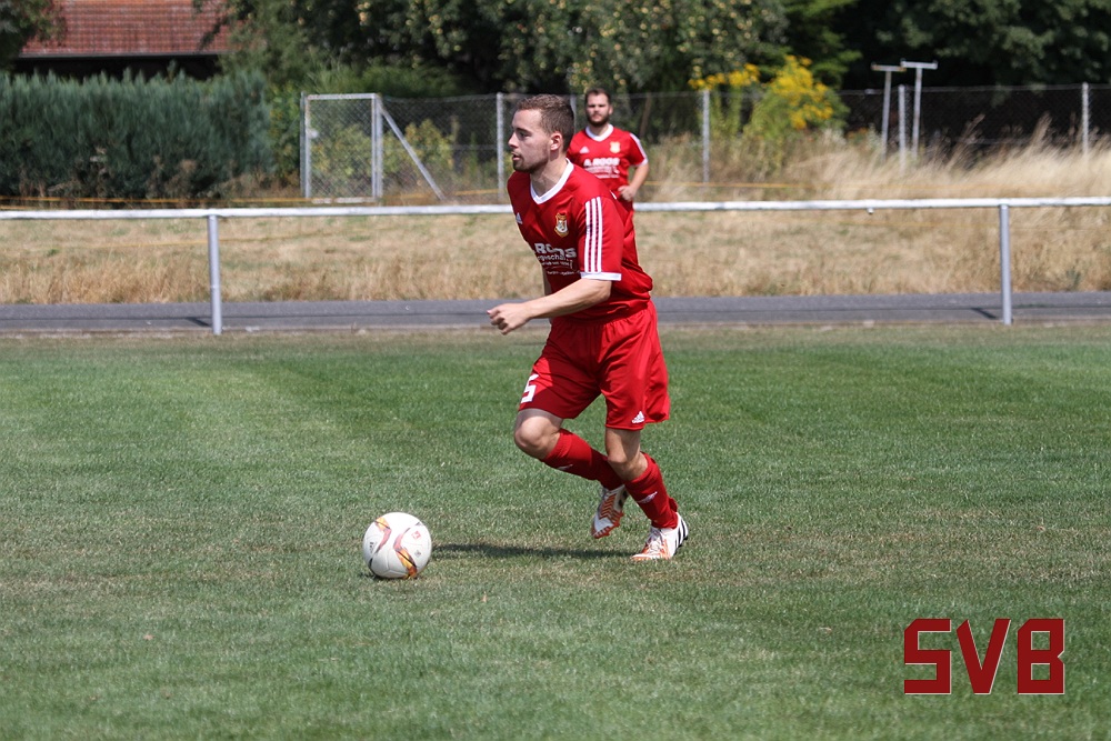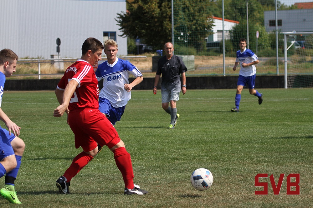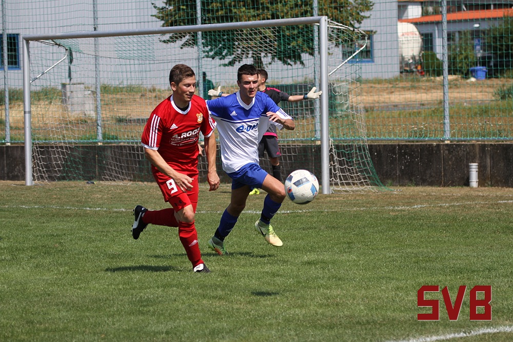 Nun war der SVB zwar höchst verunsichert, aber trotzdem gelang fast postwendend das 1:2, als David Kaufmann Jürgen Beeger auf die Reise schickte, aber dieser frei vor Kohlhepp über das Gebälk zielte.