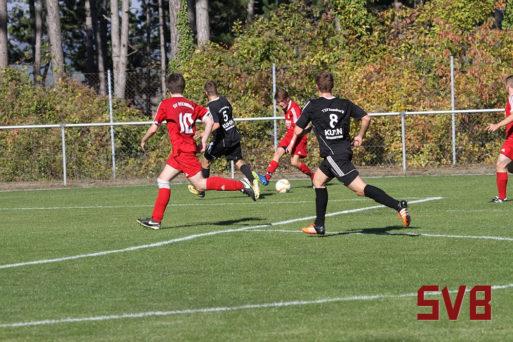 Wie in Neubrunn fand der SVB in Homburg eine kampfstarke und gut eingestellte zweite Mannschaft vor. Leider hatte man auch wieder einige Ausfälle zu beklagen. Martin Günzelmann erklärte sich dankenswerterweise bereit, das Tor zu hüten. David Kaufmann und Luca Ningler fielen erneut aus und Alex Roos, Christian Voss und Dominik Beeger nahmen zunächst nur auf der Bank Platz.