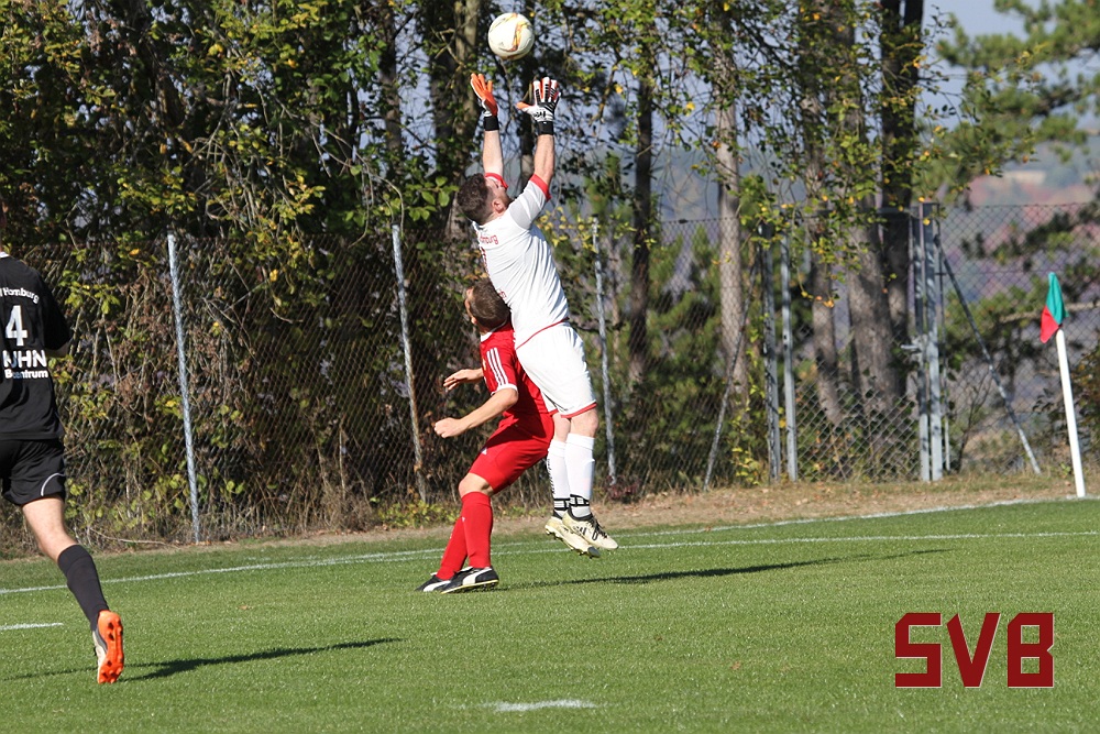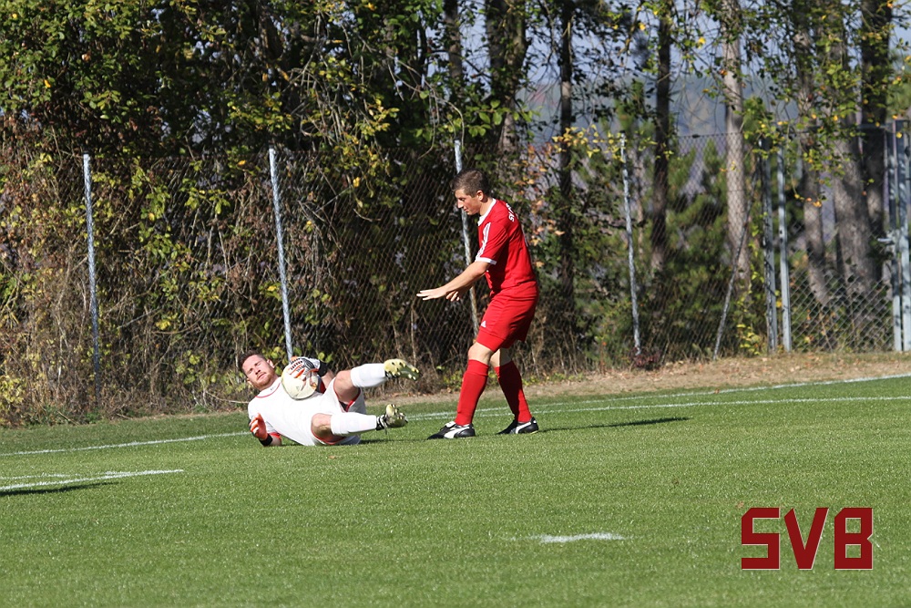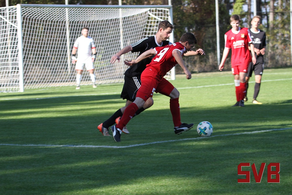 Nach viel Mittelfeldgeplänkel wurde es erst in der 29. Minute wieder richtig brenzlig: DIesmal gab es Ecke für den SVB, aber der Power-Kopfball von Daniel Weisner wurde erneut von einem Spieler auf der Linie geklärt. Kurz darauf (35.) gab es Freistoß aus Linksaußenposition und Florian Dreher zwang Simon Weierich zu einer starken Parade. Erneut nach einer Ecke (37.) jubelten die Rot-Weißen bereits, aber Max Müllers Tor wurde wegen Abseits nicht gegeben. Im Gegenzug war Florian Vogel plötzlich frei vor Martin Günzelmann, aber ihm versagten die Nerven und er drosch die Kugel in den Himmel. So ging es mit einem torlosen 0:0 in die Kabinen.