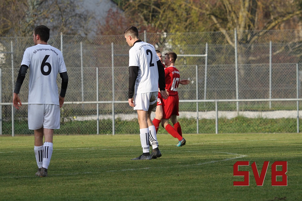 Im Vergleich zum Hinspiel erwischte die SG Urspringen/Karbach ohne ihren Torjäger Medin Desic gegen den SVB einen schwachen Tag und konnte froh sein, in diesem Spiel nicht mit 5:1 abgeschossen zu werden. Leider war es jedoch wie häufig in der Vergangenheit und der SVB nutzte seine zahlreichen Torchancen nicht, während der SG hingegen eine Chance für zwei Tore reichte.