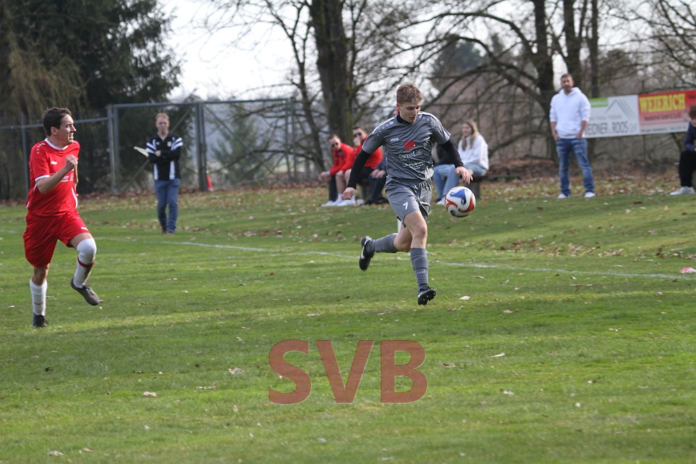 Nach einer guten halben Stunde kombinierte sich auch endlich der SVB mal wieder Richtung Gehäuse, aber Luca Ningler zielte letztendlich zu hoch. Vier Minuten später zeigte der gut leitende SR plötzlich auf den Punkt – der kurz zuvor eingewechselte Julian Roth wurde in Erwartung einer Freistoßflanke von Jan Birkholz am Elferpunkt von Kapitän Kamjar Kieaieha genau im Sichtfeld des Referees umgerissen. Birkholz übernahm die Verantwortung und schoss eigentlich auch sehr gut, aber Torsteher Ziegler hielt umso besser und kratzte den strammen Schuss aus der Ecke.