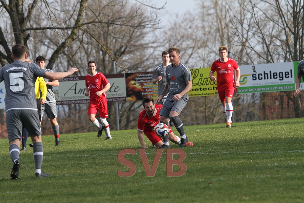 Nach einem ersten Warnschuss von Jan Birkholz in Folge eines Einwurfs klärte TSV-Keeper Ziegler zur Ecke und die in grau spielenden Bischbrunner waren eigentlich am Drücker. Aber anschließend brachte man die Gäste, die zunächst nur nach Standards gefährlich waren, durch viele schlampige Abspiele im Mittelfeld und eigene Fehler überhaupt erst ins Spiel. Besonders nach Freistößen durch den höherklassig erfahrenen Kevin Markert wurde es eigentlich immer gefährlich, aber Christian Heim rettete mehrmals.