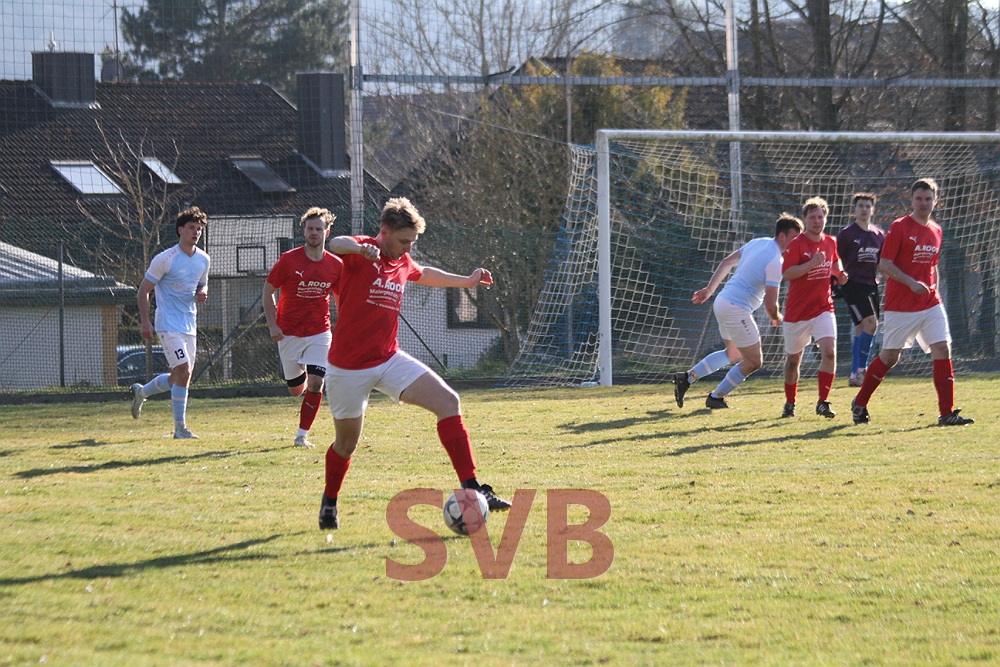 Von Anfang an wurden jedoch die Vorgaben mal wieder nicht umgesetzt, die Heimelf nahm den Kampf wesentlich besser an und war gefühlt immer einen Schritt schneller, cleverer und gewann nahezu jeden Zweikampf, vor allem in der Luft. Chancen standen jedoch auf beiden Seiten bis zur 20. Minute nicht wirklich zu Buche. Erst dann wurde Jannis Roos steil geschickt, Stefan Straub rutschte unglücklich weg und Roos hatte freie Bahn, zielte jedoch knapp am Dreieck vorbei.