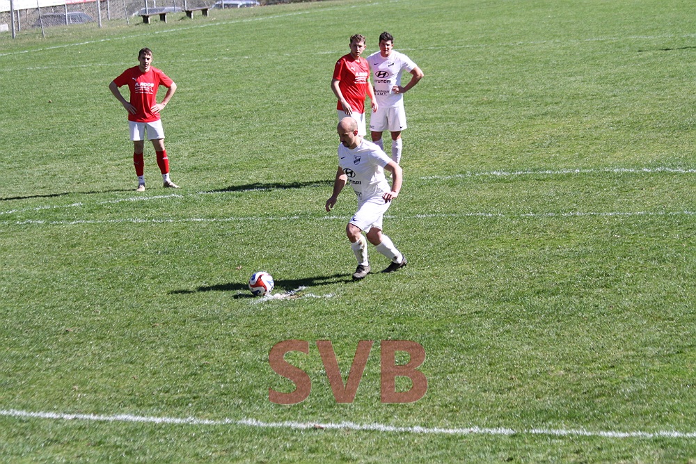 So hatten die in weiß spielenden Gäste von Anfang an wenig Mühe und bekamen nach knapp zehn Minuten einen Foulelfmeter zugesprochen, als Marc Weigand bei einer Ecke mit beiden Armen gegen Daniel Bufe zu Werke ging, und dieser das Geschenk natürlich dankend annahm und sich fallen ließ. SR Stolzenberger hatte freie Sicht und dadurch keine andere Wahl. Der „Gefoulte“ trat selbst an und verwandelte sicher zur frühen Gästeführung.