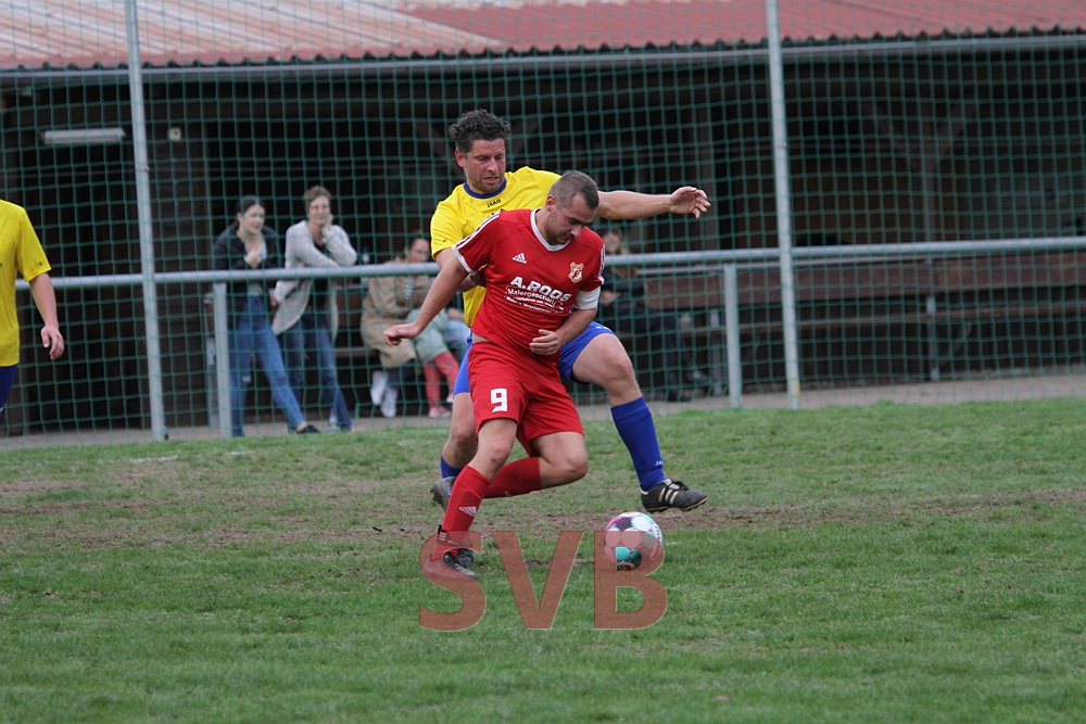 In der 26. Minute meldete sich auch die Heimelf ein erstes Mal zu Wort, als André Reinfurt aus knapp 30m einfach mal abzog. Der Schuss knallte gleich mal gegen die Latte. Drei Minuten später der nächste SVB-Angriff, Michael Väth hatte die Pille bereits am herauslaufenden Keeper vorbeigelegt, kam dann jedoch nicht mehr zum Abschluss, da Philipp Gress noch von der Seite kam und löschte.