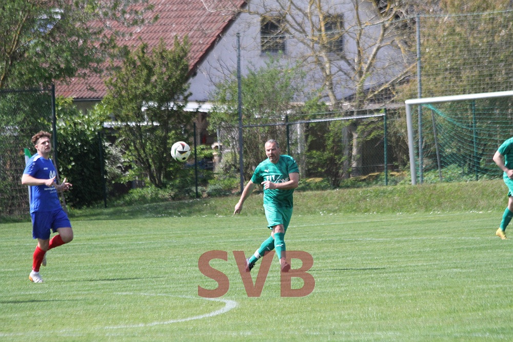 In der 35. Minute erhöhten die Gäste gar auf 0:6, als abermals Scholz im Gewusel in der Box die Pille bekam und überlegt flach recht unten abschloss. Eine Minute später auch die erste SG-Chance, als Willi Formatschek über Links freigespielt wurde, aus spitzem Winkel aber knapp links vorbeischob.