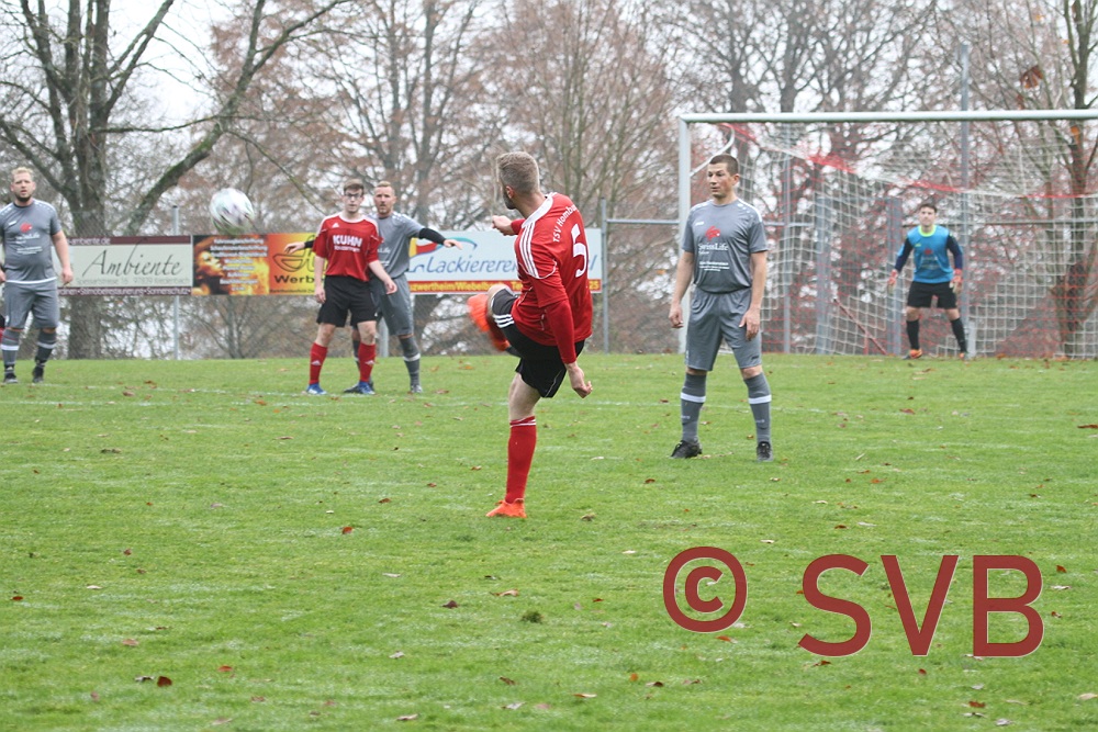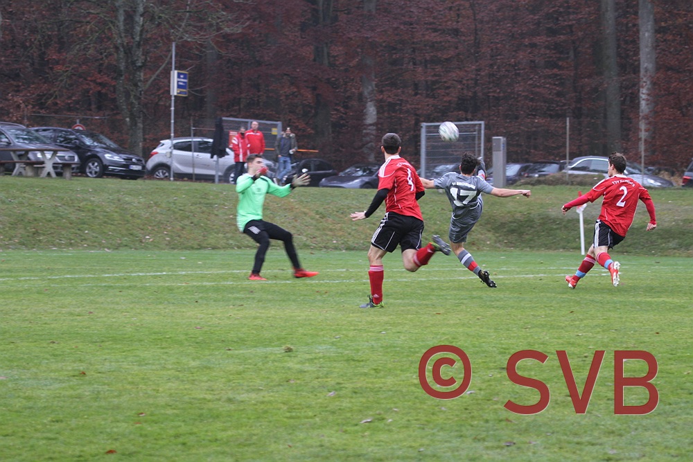 Bitter: Nach zehn Minuten klärte Alexander Keutel eine Flanke von der rechten Seite eindeutig mit der Hand, aber die Pfeife des ansonsten gut leitenden Schiedsrichters Timo Massholder blieb stumm. Und der SVB spielte auch weiterhin eine sehr gute Halbzeit und konnte den TSV durch knallhartes Verteidigen und eine geschlossene Mannschaftsleistung zumeist vom Tor weghalten, während man selbst durch gutes Pressing und Konter immer wieder für Nadelstiche sorgen konnte.