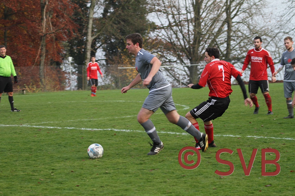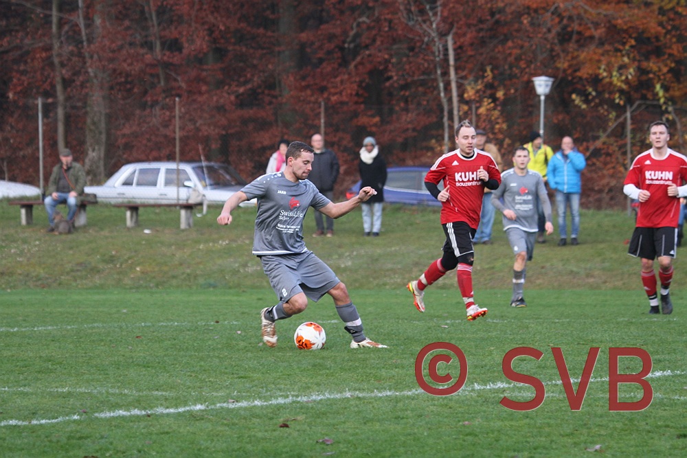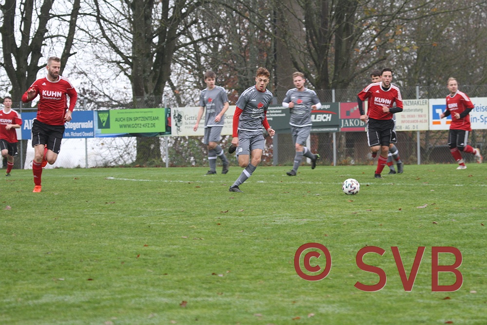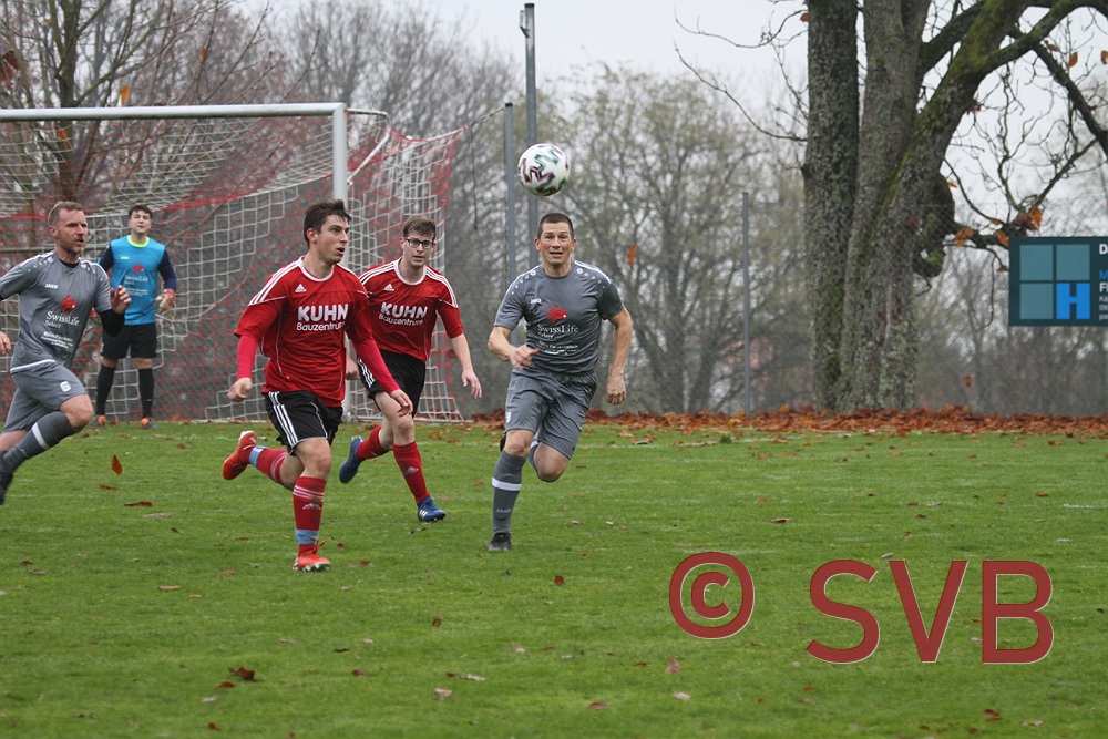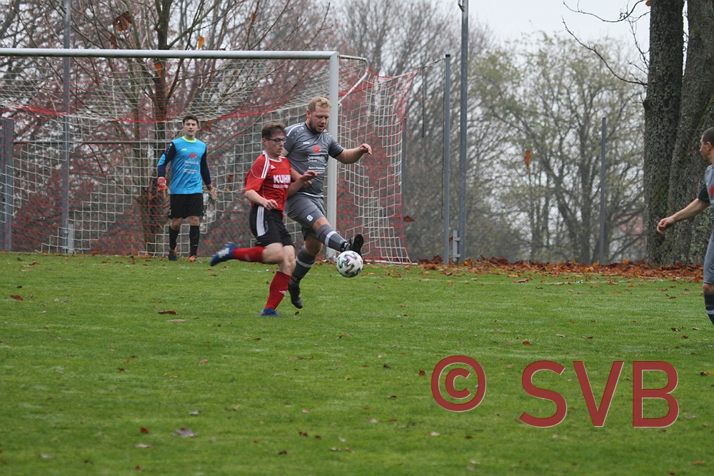 Der SVB gab sich jedoch noch nicht so leicht geschlagen und wurde noch durch zwei Fernschüsse brandgefährlich: Zunächst probierte es Julian Roth aus gut 25 Metern und der Ball flog Richtung Winkel, doch leider auch ca. 1m am Tor vorbei, ehe David Kaufmann in der 38. Minute aus ca. 28 Metern noch genauer zielte und noch knapper am Dreieck vorbeischoss.