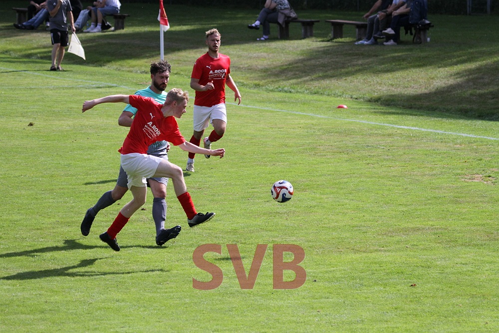 Nach Wiederanpfiff warteten die Gäste dann auf Kontermöglichkeiten, während die SG unermüdlich anlief. Viel sprang dabei zunächst noch nicht heraus. Willi Formatschek schloss zu überhastet aus 30m ab, Max Emmert zielte aus 25m drüber.