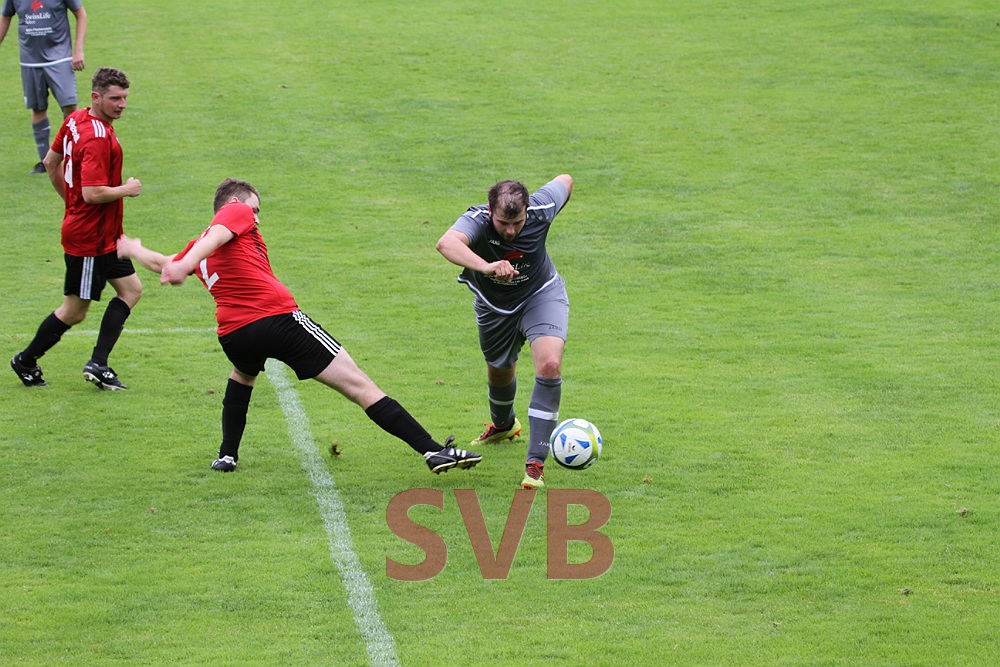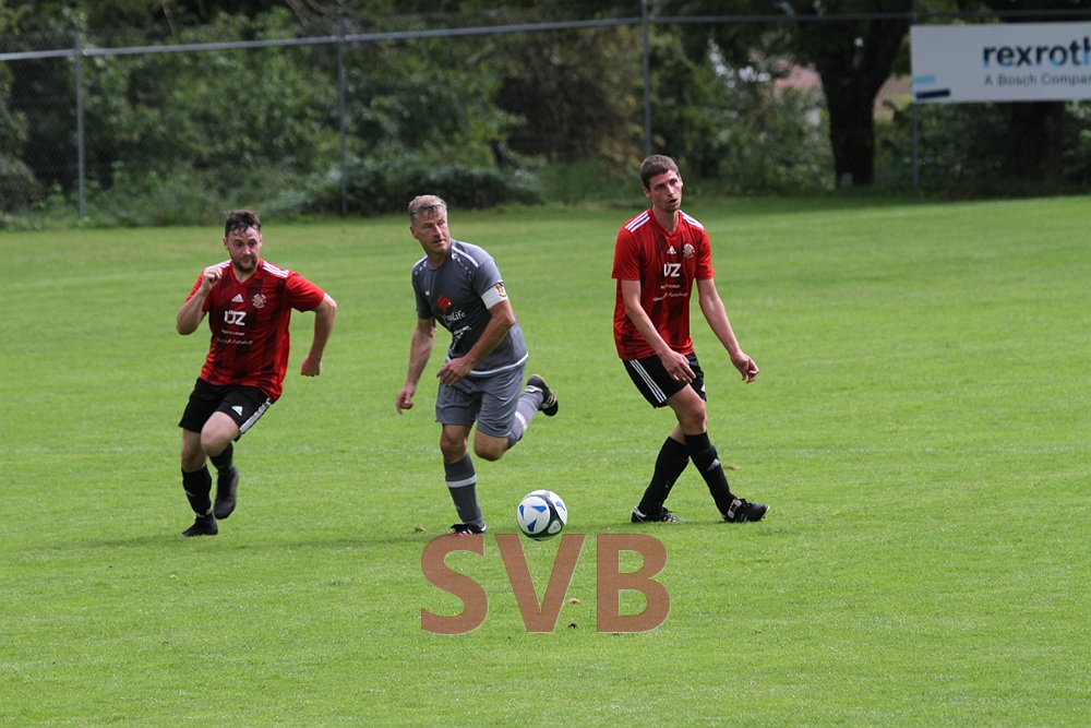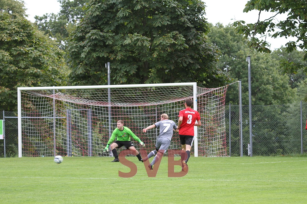 Auch in der Nachspielzeit der ersten Halbzeit demonstrierten die Gäste nochmal eindrucksvoll ihre spielerische Klasse, als Steffen Skrabs die SVB-Abwehr über Links alt aussehen ließ und sein Querpass von Ernst Heßdörfer in der Mitte per Hacke verwertet wurde.