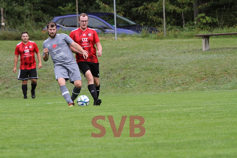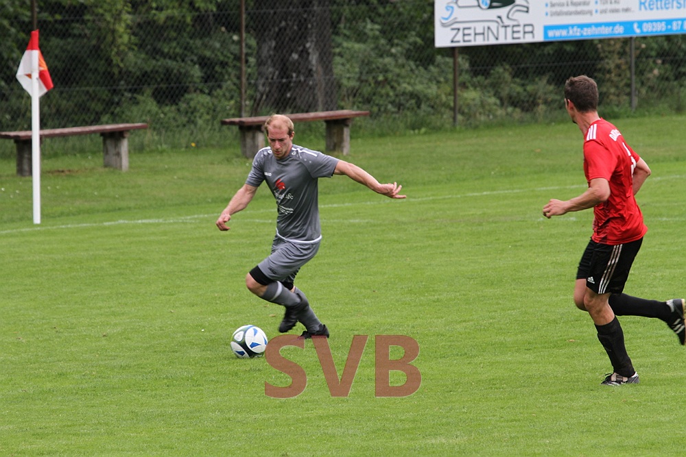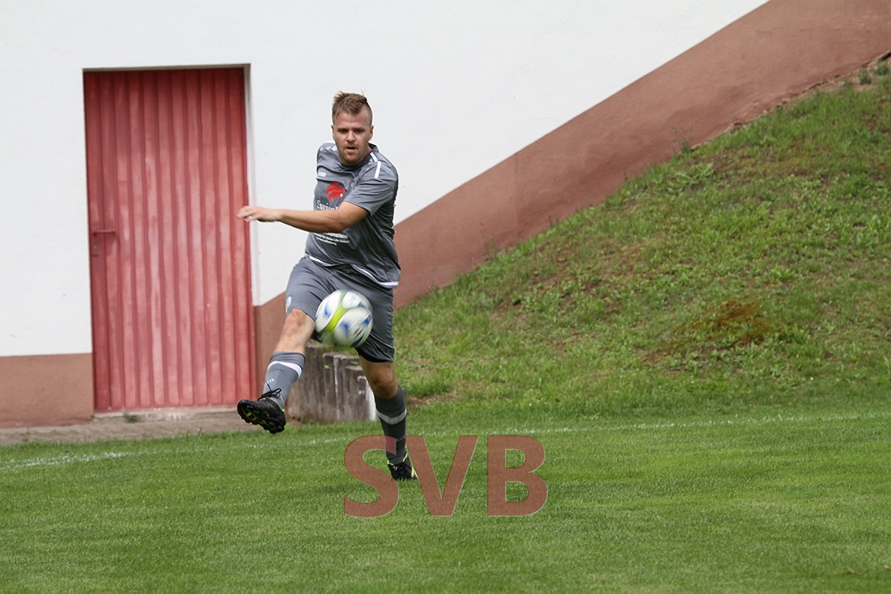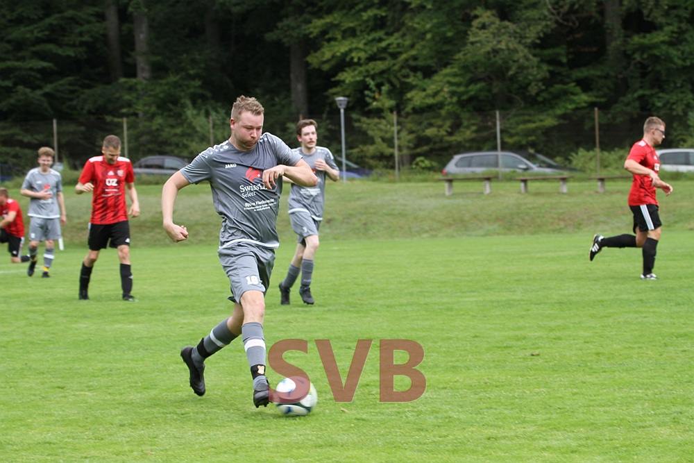 Zwar landete die Kugel kurz nach Anpfiff durch die SVB-Abwehr abgefälscht schon am eigenen Pfosten, aber anschließend erwischten sogar die in grau spielenden Bischbrunner den besseren Start. Roland Liebler schickte im direkten Gegenzug André Wagner perfekt auf die Reise, aber der scheiterte mit einem Pressschlag am Keeper. Auch Florian Bauer hatte zwei sehr gute Möglichkeiten. Im ersten Versuch, nach astreinem Querpass von Martin Günzelmann, verstolperte er jedoch und nur zwei Minuten später brachte er nach feinem Zuspiel von Roland Liebler nicht genügend Druck auf seinen Abschluss.