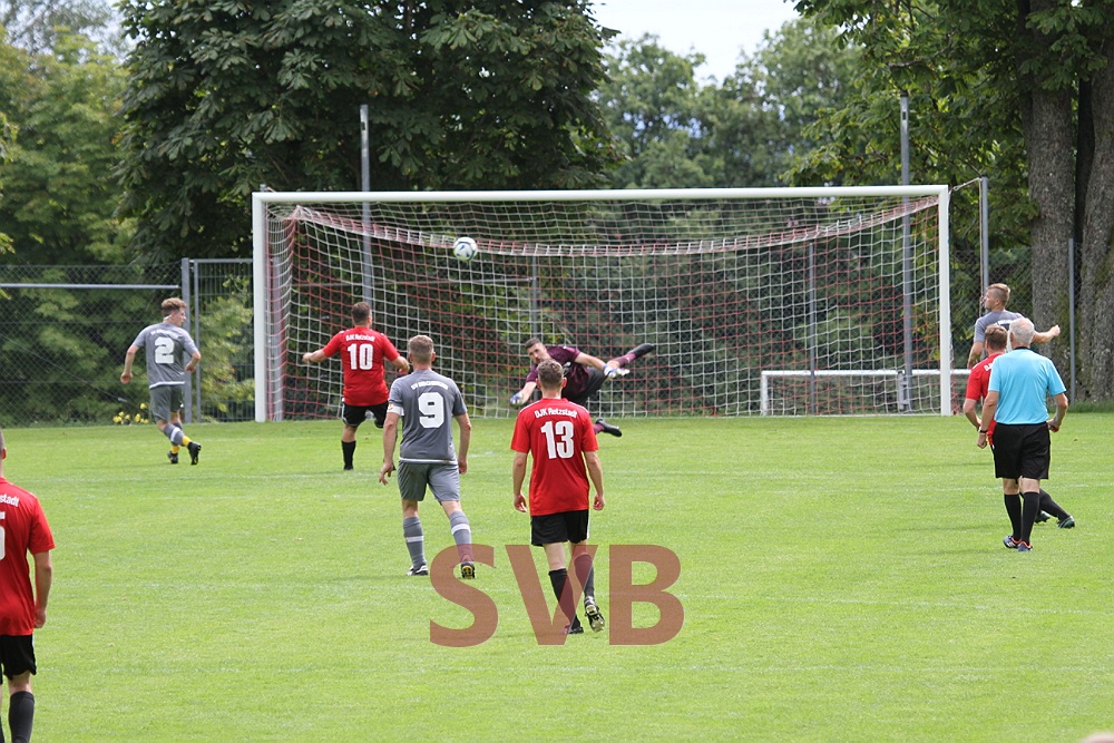 Nach zahlreichen weiteren Schüssen der Gäste, die allesamt stark von Heim im Tor entschärft wurden, dauerte es bis zur 40. Minute, ehe die DJK erneut jubeln dufte. Ein Eckball landete im SVB-Fünfer und keiner reagierte, Ernst Heßdörfer traf durch mehrere auf der Torlinie stehende Verteidiger hindurch.