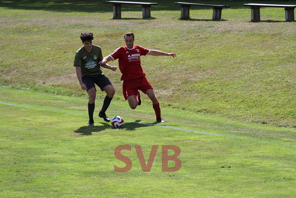 Kurz vor dem Pausenpfiff dann aber plötzlich DIE Chance auf den Ausgleich – Kevin Väth verlängerte einen Freistoß von Rüdiger Kafara, der genau vor die Füße vom einschussbereiten Sebastian „Bebbo“ Leimeister geklärt wurde. Bebbo zielte allerdings aus zwei Metern rechts vorbei.