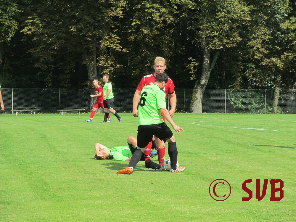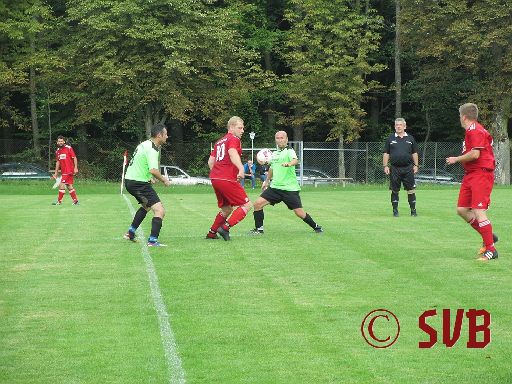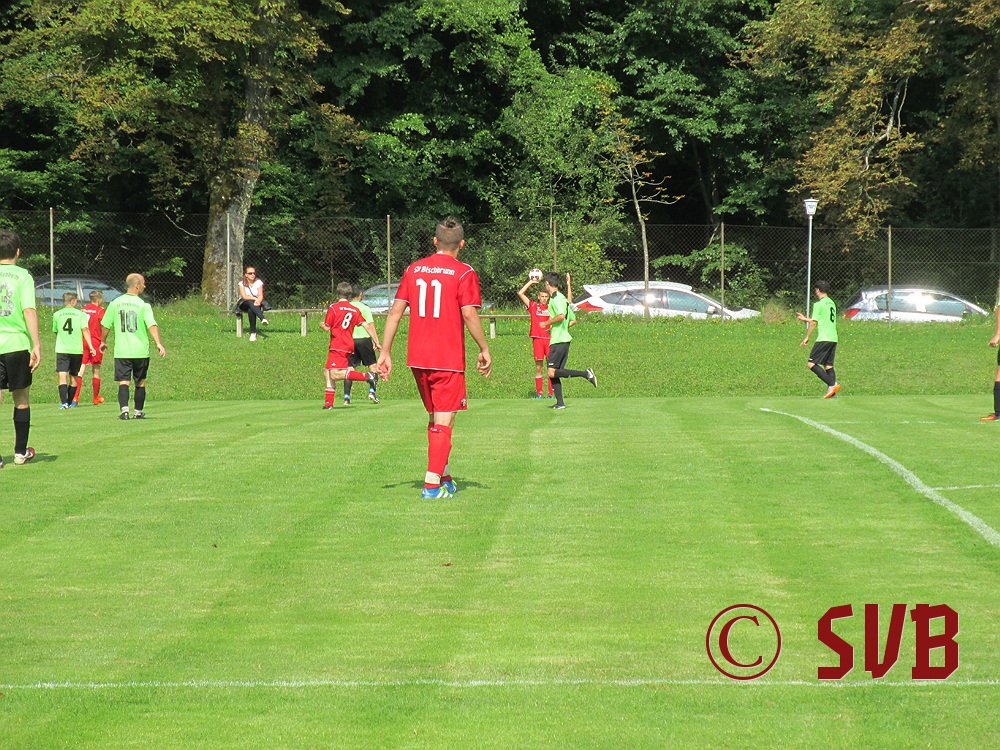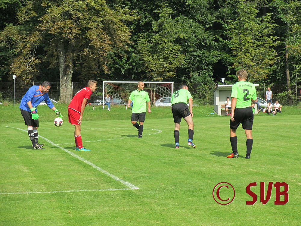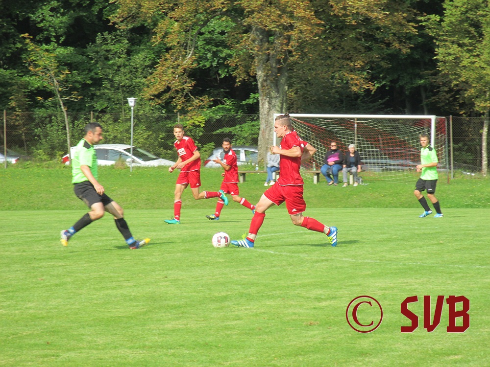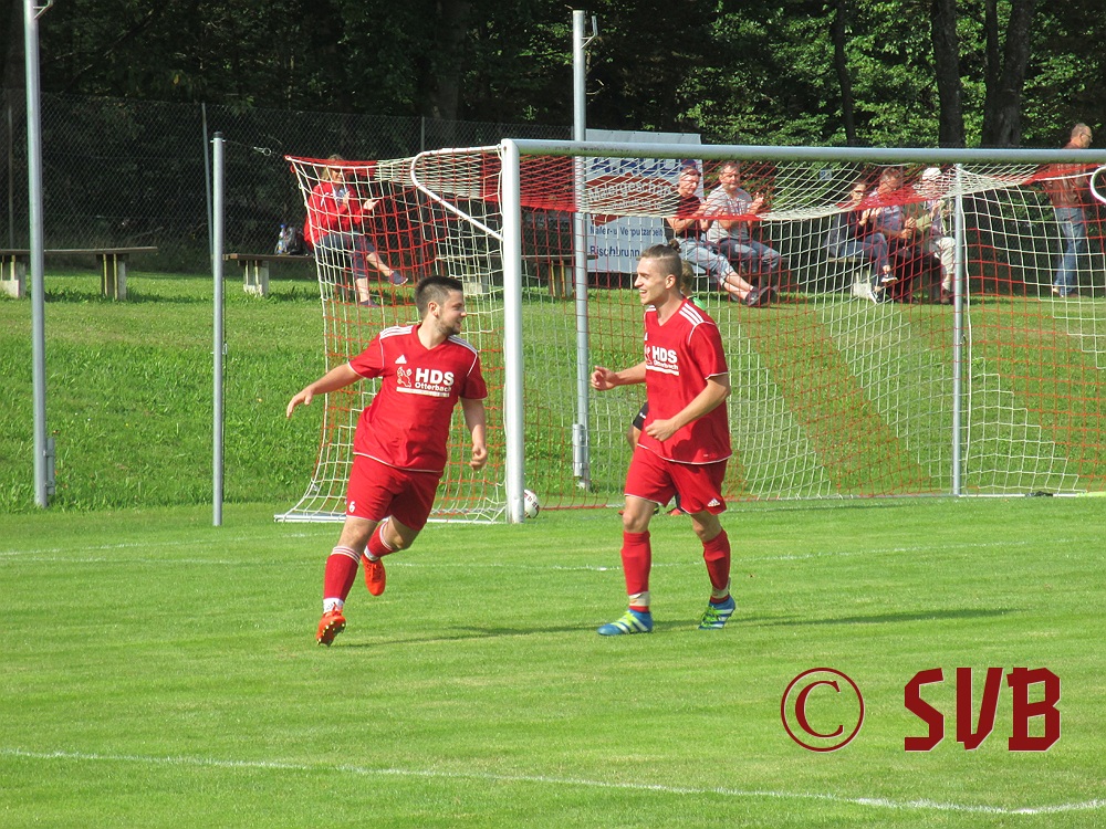 Das Spiel an sich begann der SVB druckvoll – leider nur bis zur fünften Minute, als es Freistoß für den SVB in Rechtsaußen-Position gab. Diesen führte Sebastian Hock schnell aus und fand damit Christian Voss am Elfmeterpunkt. Dessen Direktabnahme parierte Manuel Haberzettl im SVG-Tor klasse.