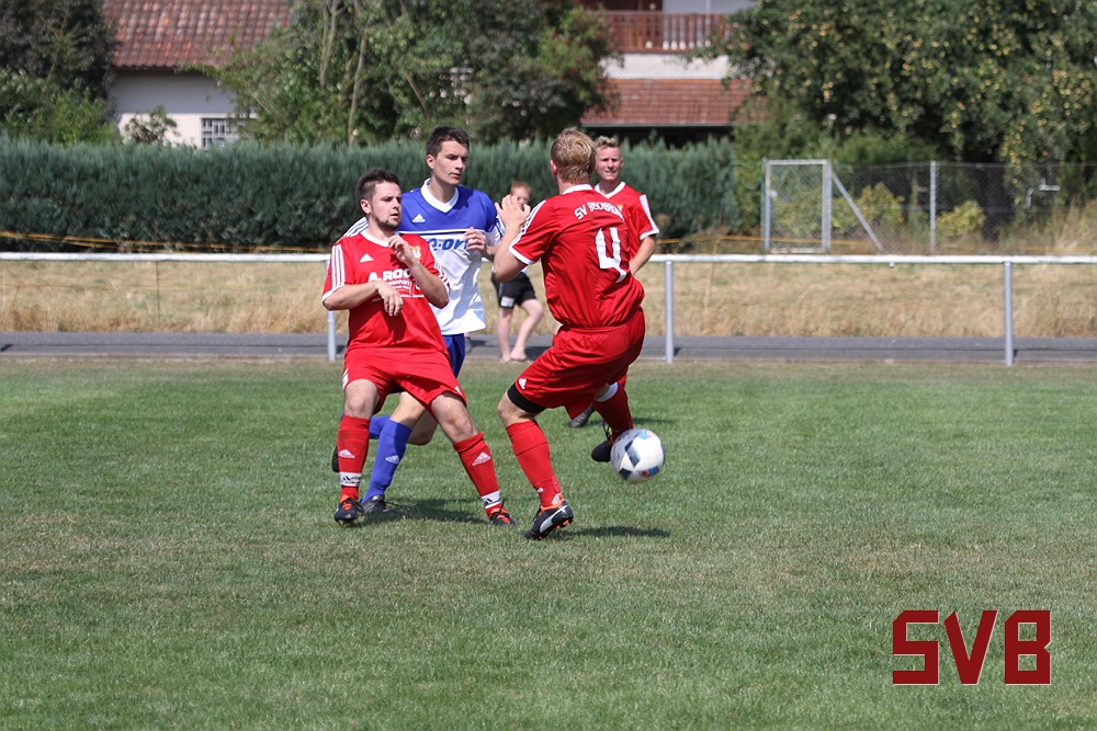 Nun war der SVB zwar höchst verunsichert, aber trotzdem gelang fast postwendend das 1:2, als David Kaufmann Jürgen Beeger auf die Reise schickte, aber dieser frei vor Kohlhepp über das Gebälk zielte.