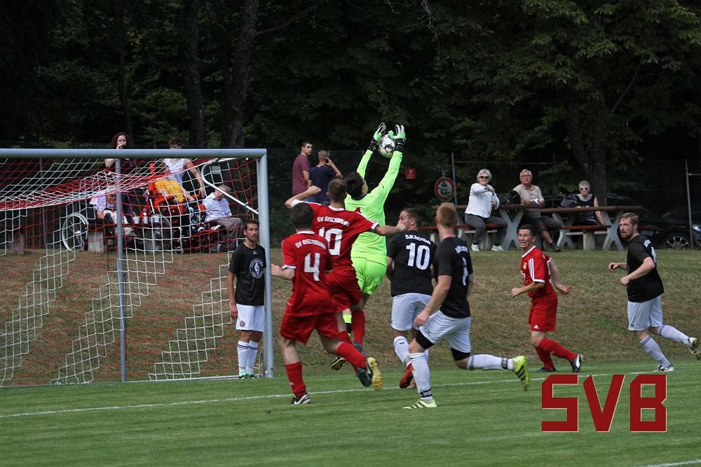 Gleich nach drei Minuten erwischten die Gäste unsere SVB-Abwehr eiskalt. Zwar war der Angriff eigentlich schon geklärt, aber irgendwie kam Hannes Full im Strafraum nochmal an den Ball und ließ Martin Günzelmann mit einem "Kullerball" keine Chance.