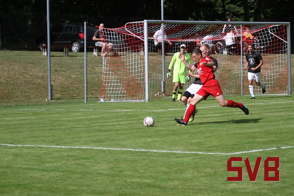 Der SVB dagegen machte es besser: Ein super Spielzug über Benjamin Schwarz und Adi Ziem wurde in der 19. Minute von diesem wunderbar quergelegt und der heraneilende Flo Dreher musste "nur noch" Danke sagen. Zwölf Minuten später fast eine Kopie dieses Spielzuges auf der anderen Seite über Nicolai Albert, doch diesmal zog Flo etwas zu früh ab und so ging der Ball knapp daneben.