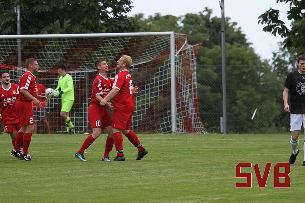 Dieses Tor setzte bei den Rot-Weißen Kräfte frei und so spielte anschließend fast nur noch der SVB, während die Gäste sich hingegen auf Konter beschränkten. Einer davon folgte bereits in der 15. Minute, aber Hannes Full zielte nach einer Flanke per Kopf nicht genau genug und so ging die Kugel über das Tor.