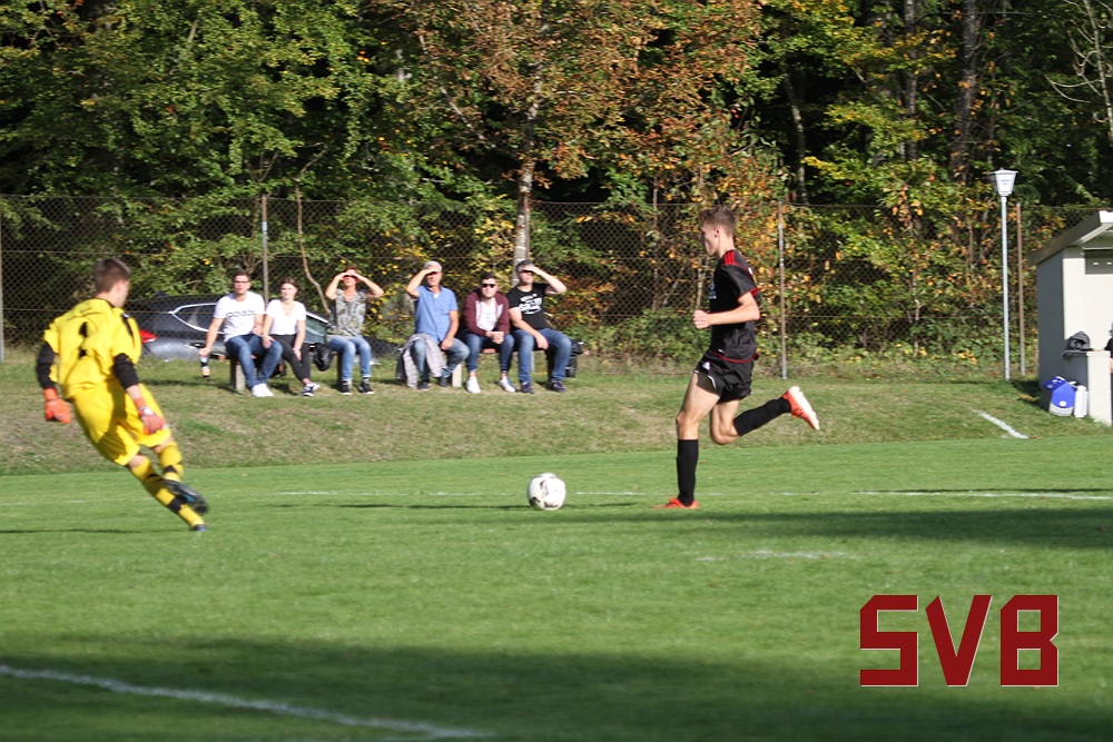 Besser machte es der SVB in der 37. Minute: David Kaufmann spielte einen schönen langen Ball auf den gestarteten Flo Dreher, der zwar bis zur Grundlinie abgedrängt wurde, aber dann sehenswert in den Winkel traf.