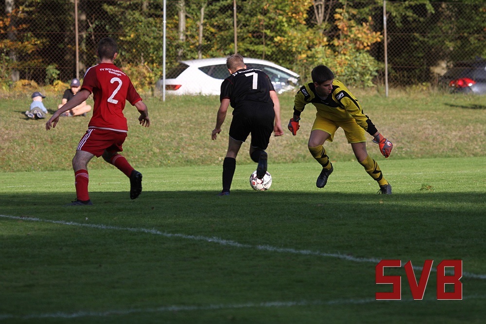 Der SVB erwischte einen ganz schlechten Start und fing sich das fast schon obligatorische Gegentor diesmal bereits nach drei Minuten. Bei einem Angriff über rechts rutschte Jürgen Beeger weg, so dass Eckert querlegen konnte. Dominik Weyerich ließ Martin Günzelmann im Tor mit einem Schuss auf der 16er-Linie keine Chance, der Ball schlug unhaltbar im Winkel ein.