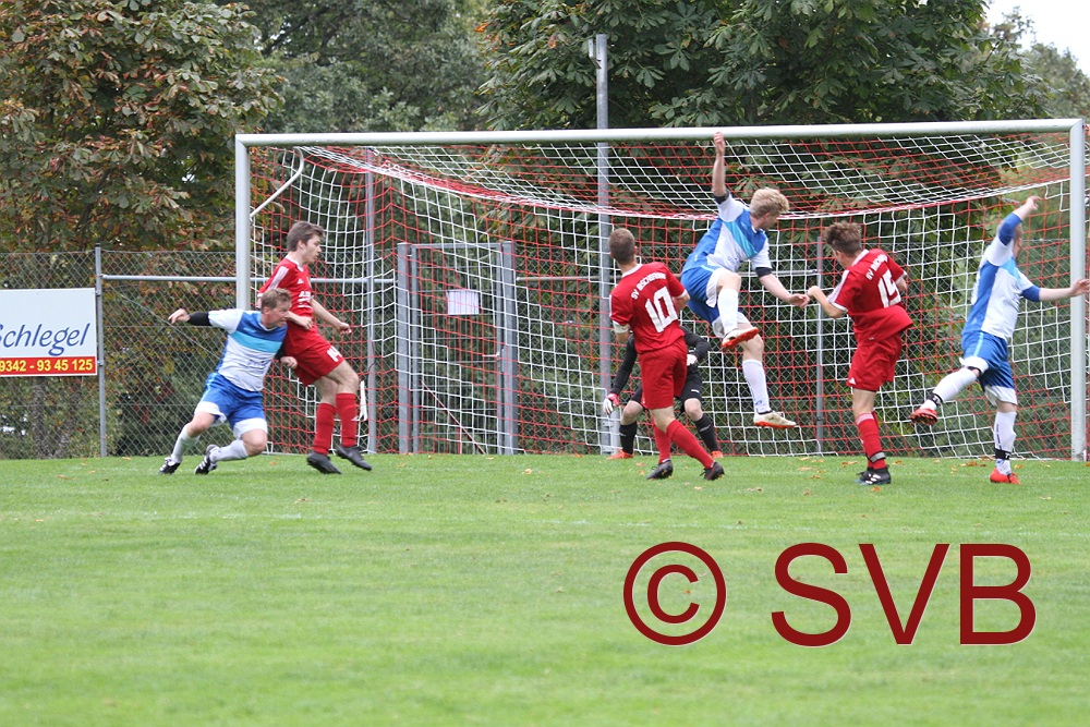Trotz allem sahen die gut 160 Zuschauer eine muntere Anfangsphase, in der der SVB durch Adi Ziem bereits nach nicht einmal 120 Sekunden in Führung ging. Ein Angriffsversuch konnte von der TVM-Abwehr noch geblockt werden, doch der Abpraller landete genau vor den Füßen von Adi, der aus ca. 18 Metern direkt abzog und damit das 1:0 erzielte.
