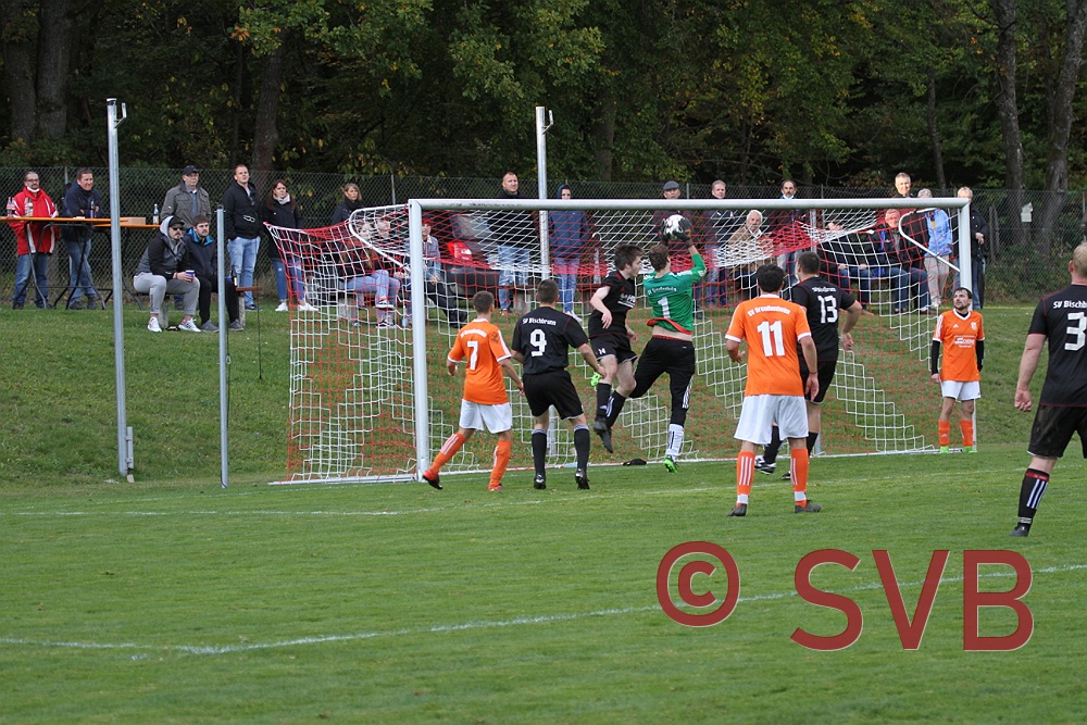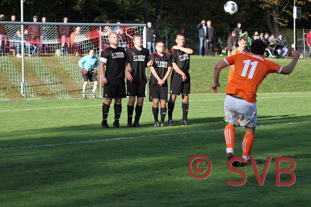 Doch der SVB gab auch weiterhin noch nicht auf und kam durch Flo Dreher nur fünf Minuten später zum 2:4-Anschlusstreffer, dem ein schöner Doppelpass mit Christian Voss vorausgegangen war. Von der 74. bis zur 76. Minute gab es gleich drei SVB-Chancen, die es in sich hatten: Zunächst zimmerte Flo Dreher einen Freistoß Richtung Giebel, doch Julian Fersch konnte gut parieren, ehe Alex Roos nach einer Ecke zum Abschluss kam, der sicher eingeschlagen hätte und gerade noch geblockt werden konnte und zu guter Letzt traf Flo Dreher nochmals Aluminium, diesmal den Pfosten und der Ball sprang ins Aus…