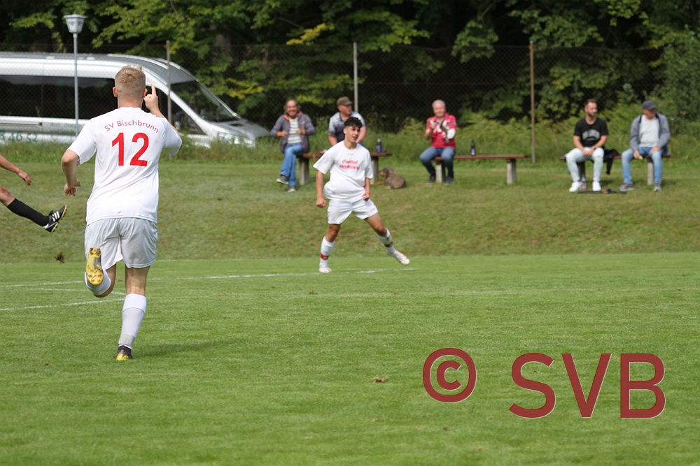 Stattdessen legten die heute in weiß spielenden Bischbrunner nach und kamen schon nach neun Minuten zum 2:0 – nach einem Pressschlag im Mittelfeld trudelte der Ball herrenlos herum, Flo Dreher schaltete am schnellsten und spielte blitzschnell auf den durchgebrochenen Adi Ziem, der souverän einnetzen konnte.
