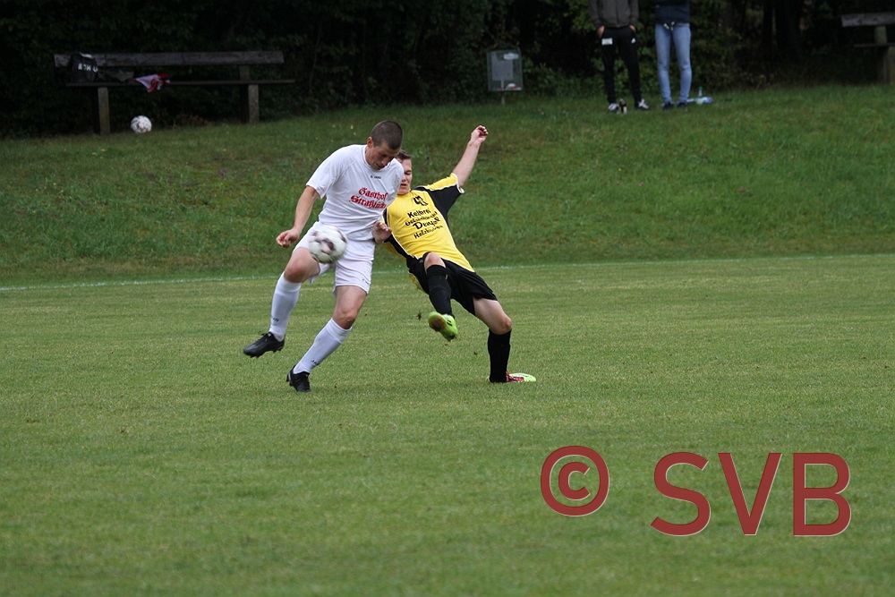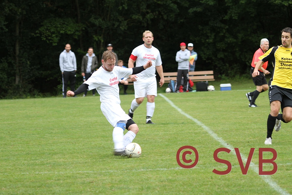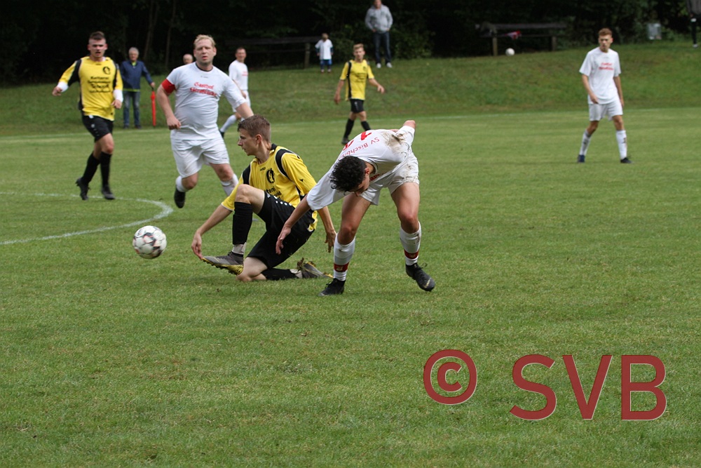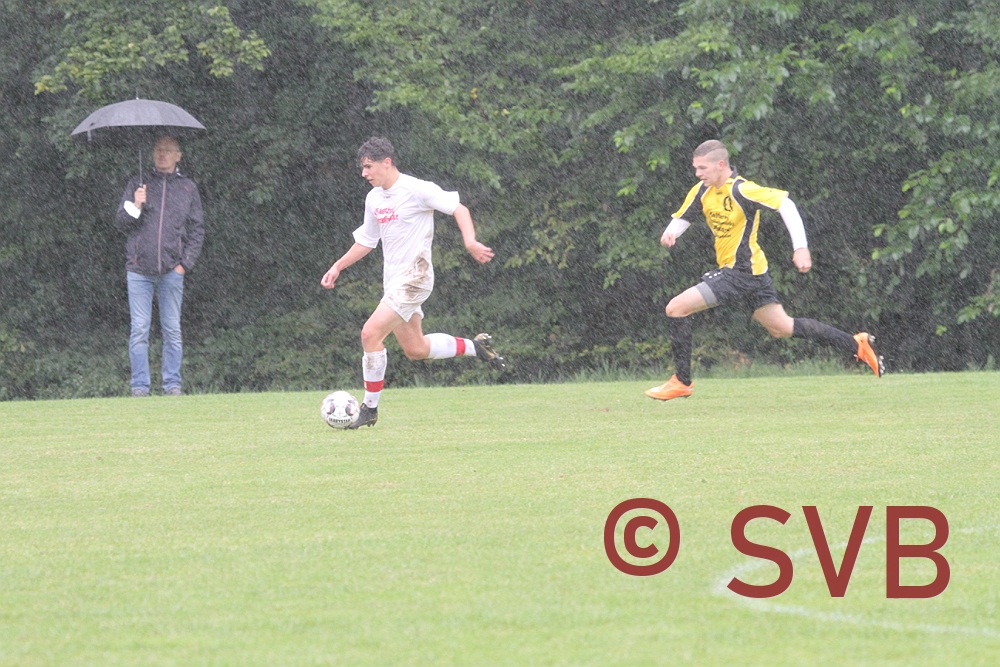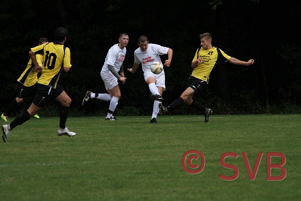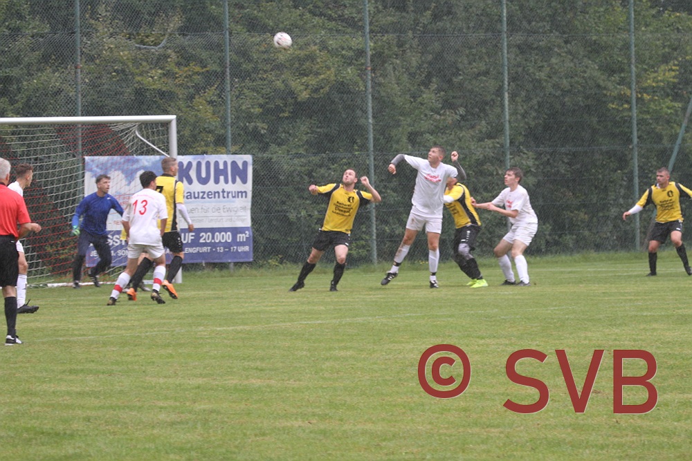 Nach der Halbzeit war der SVB sofort hellwach und drückte auf den Ausgleich, der in der 51. Minute auch prompt fallen sollte: Christian Voss brachte einen Freistoß kurz hinter der Mittellinie punktgenau zum nach vorne geeilten Domi Weisner, der sich am Elfmeterpunkt noch stark im Zweikampf durchsetzte und sehenswert unter die Latte vollstreckte.