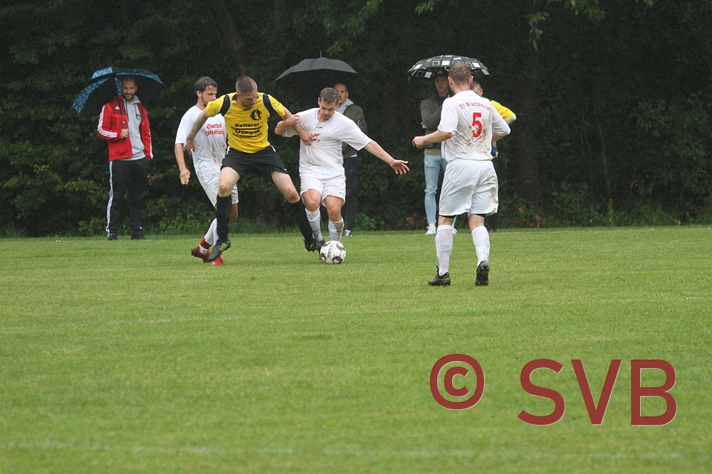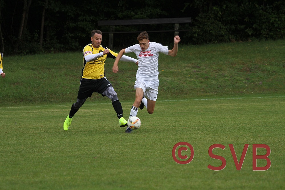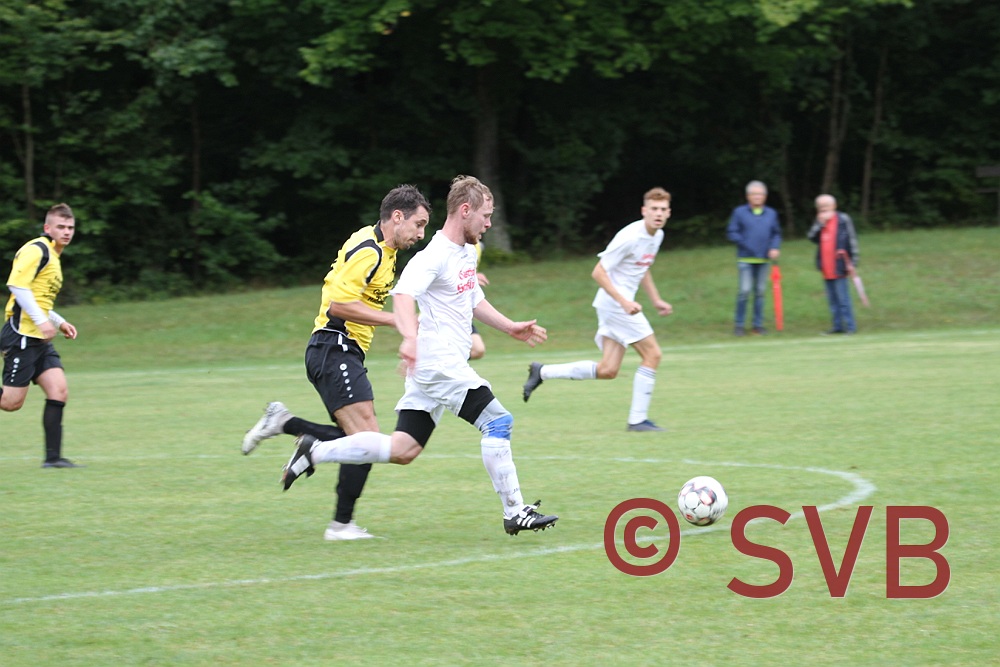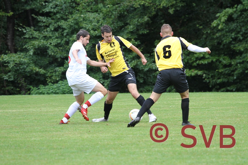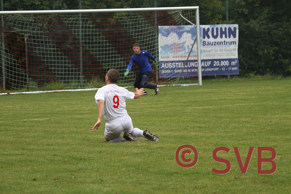 Vom Anstoß weg war der Kampfgeist und die Einsatzbereitschaft der SVBler deutlich zu spüren. Zwar hatte die Heimelf in den ersten 20 Minuten drei Halbchancen zu verzeichnen, aber die ersten beiden SVB-Möglichkeiten hatten es dafür gleich in sich: Erst spielte Christian Voss in der 20. Minute einen super Ball in die Gasse auf Julian Liebler, der damit frei auf Keeper Ruffert zulief, aber an diesem scheiterte. Und fünf Minuten später luchste Adi Ziem dem Innenverteidiger den Ball ab, war dann aber zu uneigennützig und legte aus bester Schussposition noch quer zu Julian Liebler, statt selbst zu schießen. Der Querpass geriet jedoch zu steil und so drosch Julian die Kugel mit dem falschen Fuß über das leere Tor.