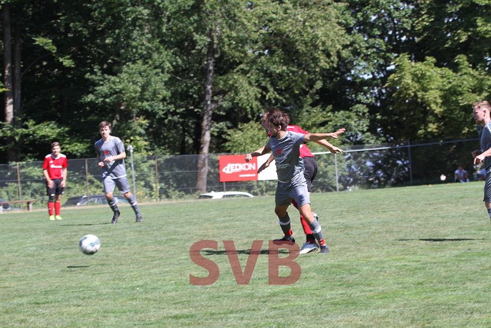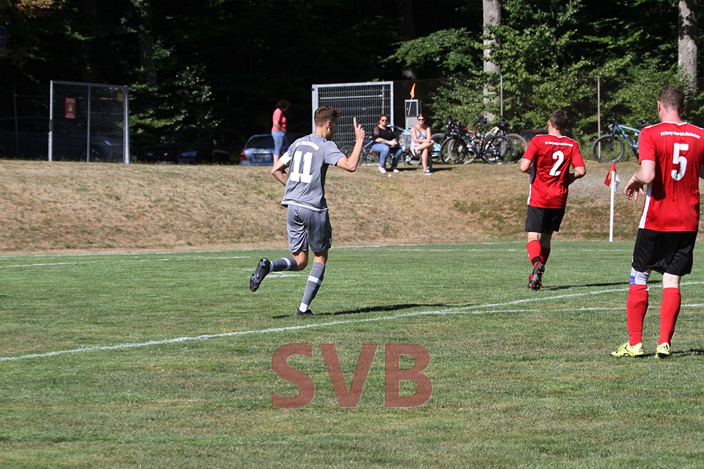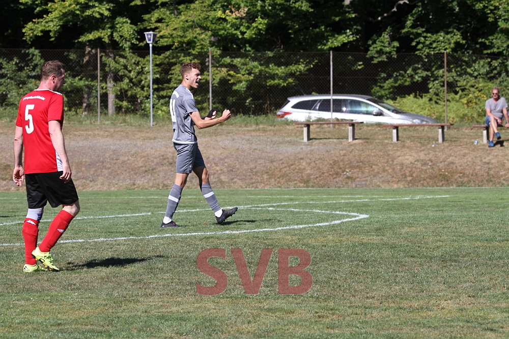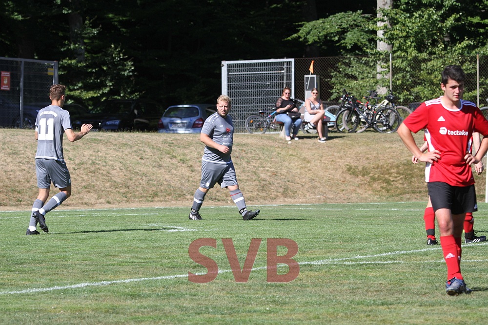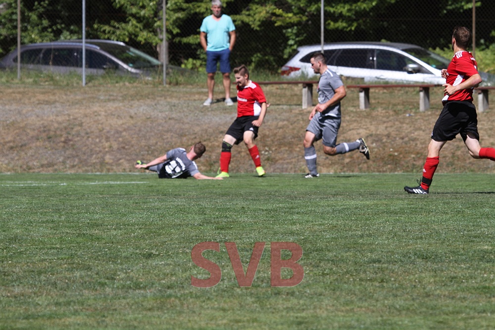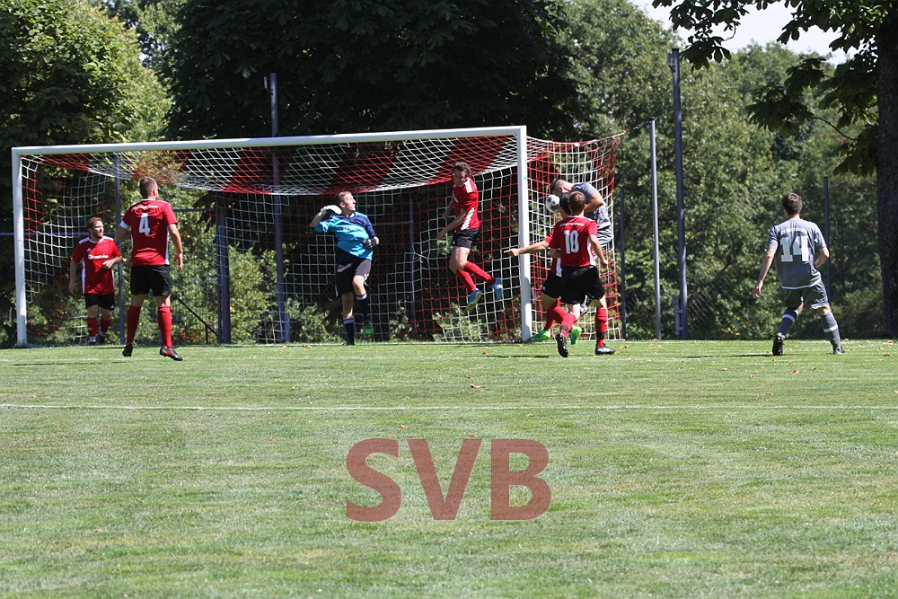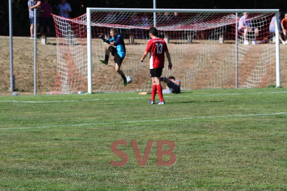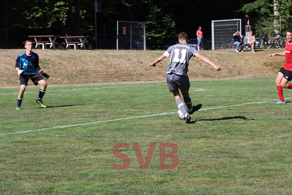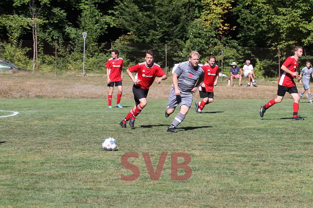 Erst nach einer ordentlichen Ansprache zur Halbzeit präsentierten sich die SVBler in der zweiten Hälfte verbessert und konnten auch prompt in Führung gehen: Endlich kam mal ein Pass in die Tiefe bei Julian Liebler über rechts an, dessen erster Querpass wurde noch geblockt und im zweiten Versuch unterlief der Verteidiger in der Mitte die Flanke, so dass Lars Liebler frei vor Schramm auftauchte und ihn sogar noch tunneln konnte.