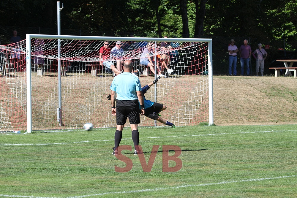 Gegen Ende des Spiels wurde es dann sogar noch deutlich: Zunächst gab es in der 90. Minute einen Straftstoß für den SVB, als Julian Liebler beim Versuch eines Fallrückziehers gehalten wurde. Diesen verwandelte Christian Voss sicher.