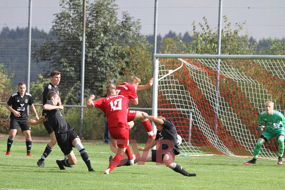 Nach dem Wechsel konnten die knapp 80 Zuschauer zunächst wieder zahlreiche Zweikämpfe begutachten, ehe die erste erwähnenswerte Torchance David Kaufmann bei einem Freistoß gehörte, den er von der rechten Seite über die Mauer auf die Latte setzte.