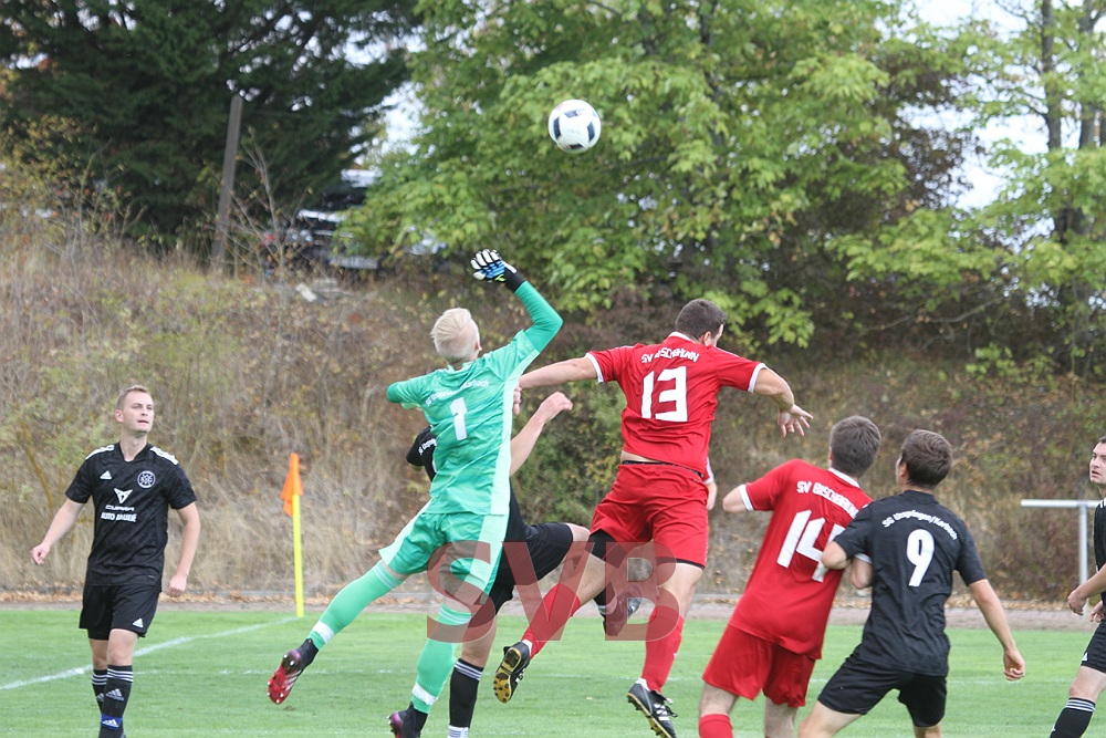 Nun dachte jeder, der SVB könnte befreit aufspielen, aber weit gefehlt: Nur vier Minuten später bekam Jonas Eckert von der SG einen Ball ca. 20m mittig vor dem Tor serviert, Paul Jaklin rückte zwar noch raus, aber die Mischung aus Schuss und Pressschlag fiel genau in den Knick zum 1:1.