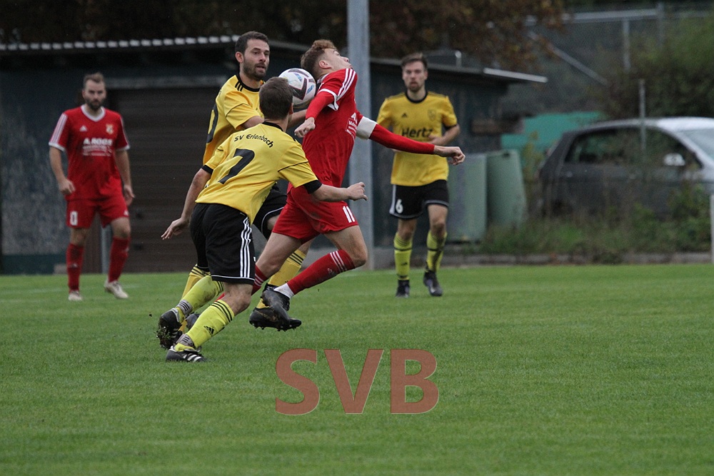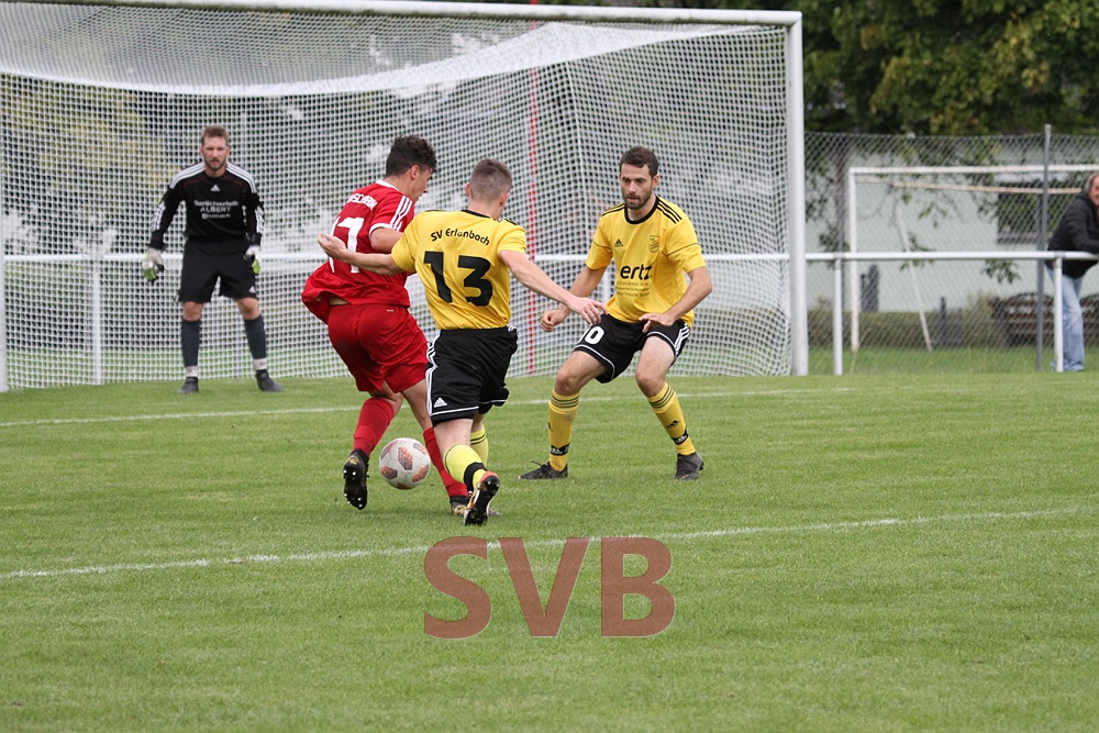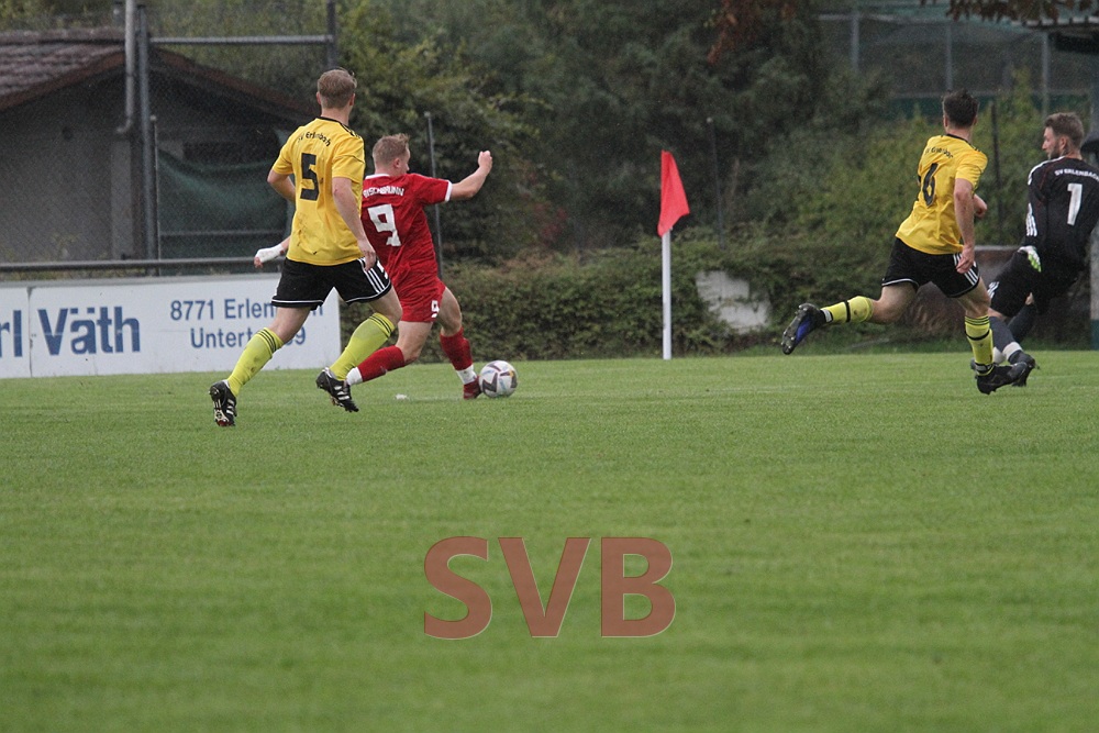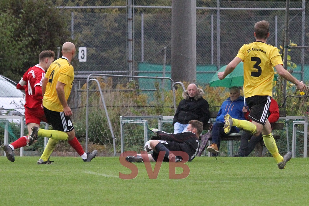 Bitter: Im Gegenzug glich Erlenbach zum 2:2 aus, als diesmal nach Flanke von rechts die Direktabnahme von Spies saß. Der SVB erholte sich jedoch erstaunlich schnell von diesem Schock und hätte vier Minuten später die erneute Führung erzielen MÜSSEN, doch Luca Ningler scheiterte im Eins-Gegen-Eins an Leimeister.