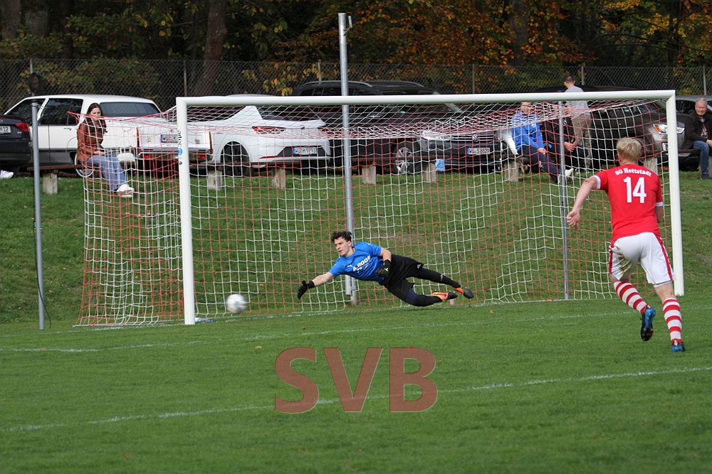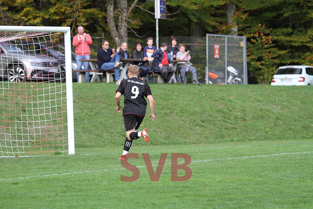 Bitter: Vier Minuten später näherten sich auch die Gäste das erste Mal dem Bischbrunner Tor – zunächst verschaffte sich ein SGler eindeutig mit beiden Händen Platz um zu flanken, Gäste-Spielertrainer Cichon nahm die Kugel an und wurde von Paul Jaklin ganz leicht geschubst und ging zu Boden. Der völlig überforderte SR Bruckner schenkte den Gästen jedoch einen „Foul“elfmeter, den Cichon eiskalt verwandelte und sich vermutlich selbst darüber „ins Fäustchen lachte“.