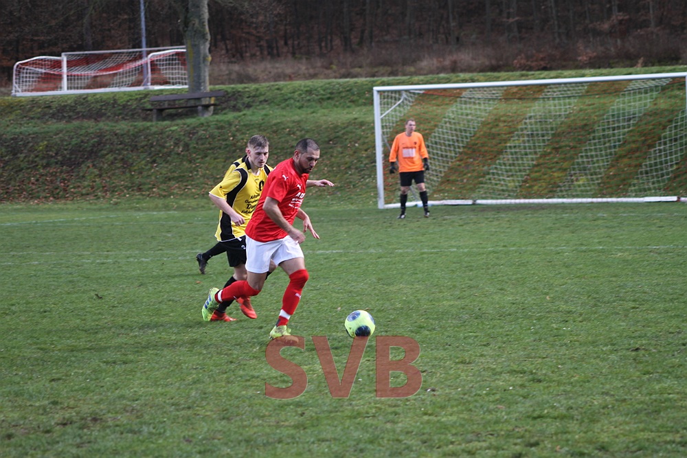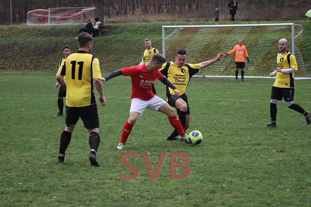 Die elf nominierten SVB-Spieler lieferten diesmal allerdings wider Erwarten eine kämpferisch starke Leistung ab, zumal auch beim FSV mit Torjäger Patrick Knauer, Benedict Müller, Steffen Fries und Niklas Fuchs wichtige Mannen fehlten. Trotzdem wurde es nach nicht einmal 60 Sekunden direkt brenzlig, als Spielertrainer Heiko Esser Marcel Schneider auf Linksaußen bediente und dieser an Debütant Manuel Jeßberger schon vorbeigezogen war. Manu wusste sich als letzter Mann nur durch Halten zu helfen, was SR Rehm direkt zu einem gelben Karton zwang, was noch gnädig war. Nachdem bei ihm auch noch der Oberschenkel zu machte, war für Jeßberger bereits nach fünf Minuten wieder Schluss und Youngster Jens Väth kam in die Partie.