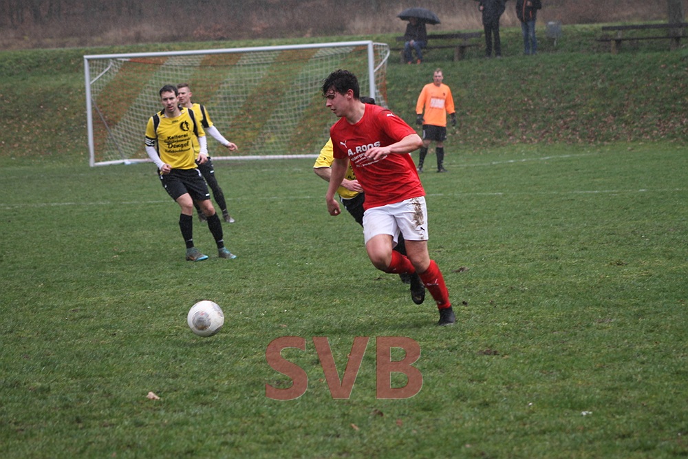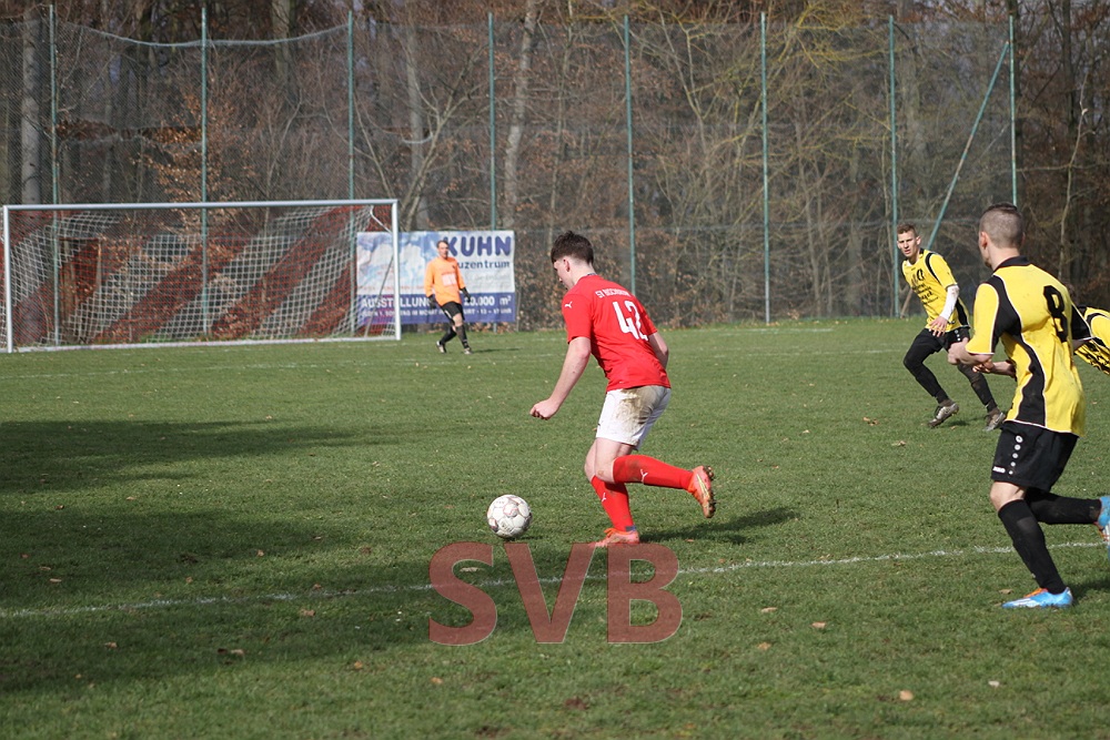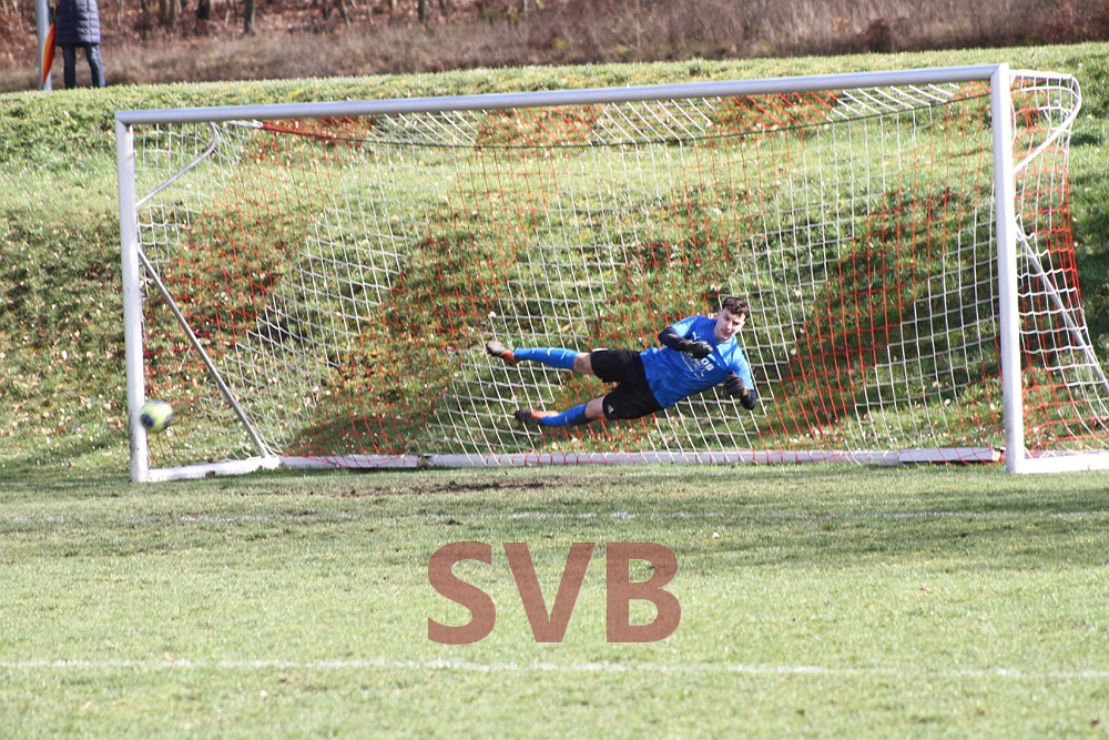 So kam es anders: Nach einer Ecke von Luca Ningler nach einer halben Stunde auf den langen Pfosten war Domi Weisner stark per Kopf zur Stelle, beförderte die Kugel damit quer zum Tor und aus dem Getümmel drosch Julian Liebler das Spielgerät zur SVB-Führung unter die Latte.