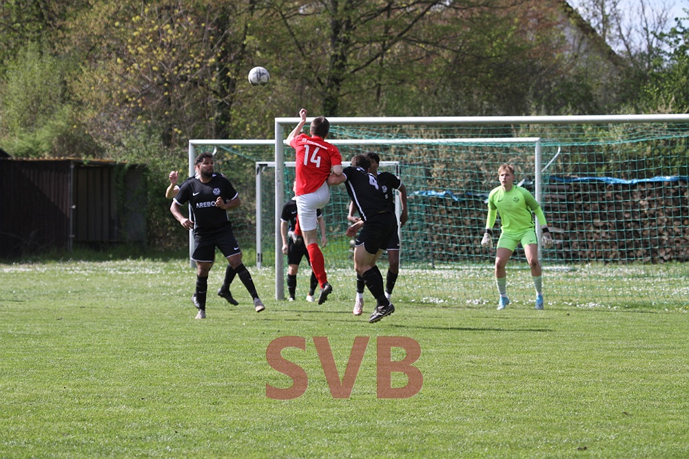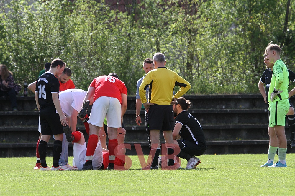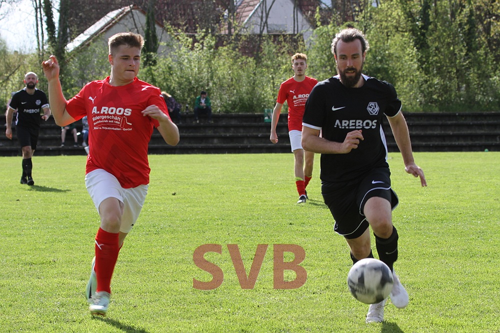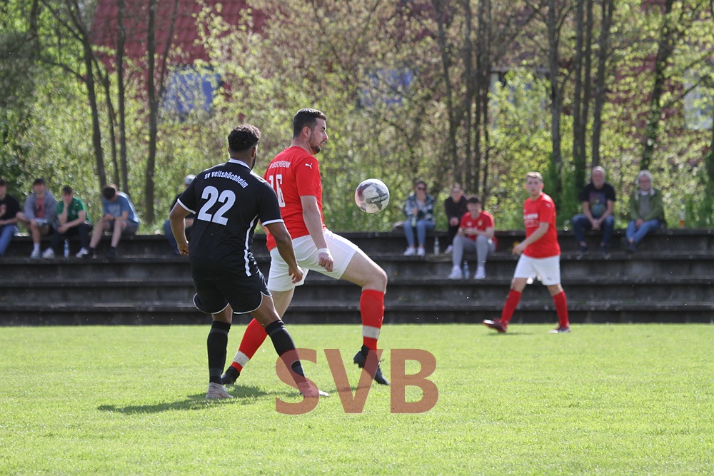 Nach dem verschenkten Sieg in letzter Sekunde gegen Urspringen/Karbach wollte das Team von Spielertrainer Jan Birkholz in Veitshöchheim Wiedergutmachung betreiben. Leider fielen Paul Jaklin kurzfristig und Jürgen Beeger verletzungsbedingt aus, so dass der seit Wochen angeschlagene Julian Roth erneut von Beginn an auflaufen musste. Zudem weilte Luca Ningler noch immer im Urlaub – für ihn begann Youngster Jens Väth, der seine Sache ordentlich machte. Auf der Bank nahmen ausschließlich Spieler Platz, die zuvor bereits in der Reserve gekickt hatten.Trotz aller personellen Probleme fanden die Rot-Weißen gut ins Match und standen zunächst hinten sicher. Nach knapp zehn Minuten die erste Chance, die es gleich in sich hatte: Nico Albert flankte schön über links in die Mitte und Adi Ziem stand goldrichtig, traf bei seinem Abschluss aber leider einen Verteidiger im Gesicht.Zwölf Minuten später die nächste gute Möglichkeit: Nach einem schönen Ball von Julian Roth ließ sich Julian Liebler im 16er leider etwas zu lange Zeit, so dass ihm ein Verteidiger noch fair die Kugel abluchsen konnte.Nach einer guten halben Stunde hätte spätestens die SVB-Führung fallen müssen: Nach einem starken Diagonalball von Adi Ziem nahm Julian Liebler das Leder noch gut per Brust mit, scheiterte dann aber im Eins-gegen-Eins am stark reagierenden Keeper Dustin Fishman.Im Gegenzug war Niklas Saal plötzlich über links durch, leider ging Keeper Julian Behl etwas übermotiviert am 16er-Eck mit dem Fuß Richtung Stürmer und Ball, statt die Pille mit der Hand aufzunehmen. SR Walter blieb daraufhin keine andere Wahl, als auf den Punkt zu zeigen. Marcus Füller verwandelte sicher und Veitshöchheim führte mit der ersten gefährlichen Aktion sofort 1:0.Nur zwei Minuten später hätte das Team von Magnus Rentzsch beinahe schon erhöht, aber der Schuss von Niklas Saal von rechts landete am Pfosten.Der SVB gab sich aber noch nicht auf und hatte kurz darauf die Chance auf den Ausgleich. Nach einer Flanke von Christian Voss scheiterte Adi Ziem allerdings mit seiner Direktabnahme ebenfalls an Dustin Fishman.Wenig später ging es für Julian Roth doch nicht mehr weiter. Da Davor Miskovic noch nicht fertig umgezogen war, spielte der SVB kurz in Unterzahl, die prompt ausgenutzt wurde: Ein Steckpass von Niklas Saal auf Robin Wolz genügte, dieser ließ Behl im Tor keine Chance.So stand zur Pause nach einem eigentlich recht ausgeglichen Spiel eine 2:0-Führung für Veitshöchheim zu Buche, da die Heimelf ihre Chancen einfach besser nutzte.