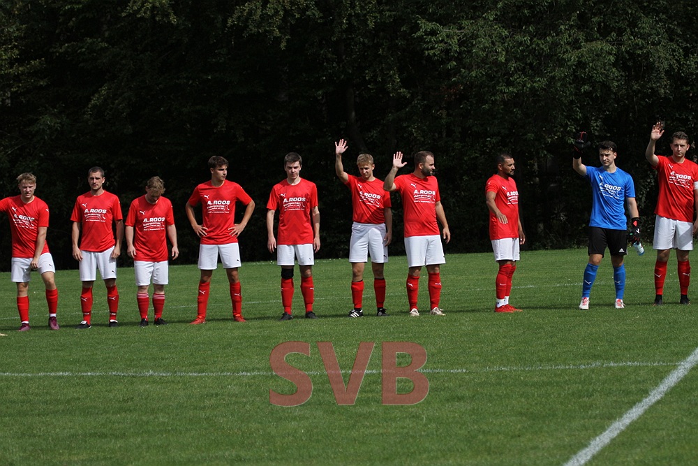 Auch nach einer halben Stunde hatte der SVB Glück, da ein von Birkholz unterbundener Konter zu einem Freistoß führte und während der SVB noch diskutierte schaltete Esser am schnellsten und vollstreckte eiskalt. SR Kimmich, der auch ansonsten äußerst kleinlich pfiff, gab den Treffer jedoch nicht, da er noch nicht angepfiffen hatte.