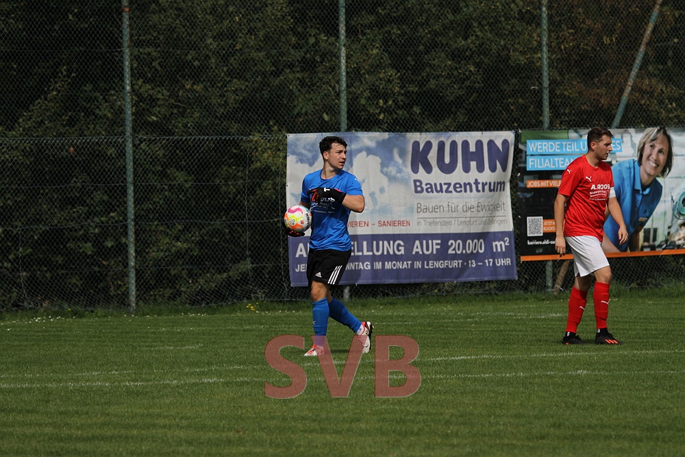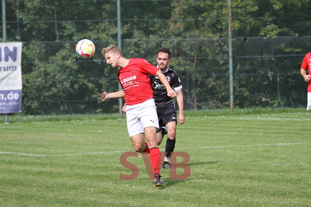 Kurz darauf klingelte es dann aber auf der anderen Seite. Nach mehreren Kopfbällen schien Julian Roth die Situation geklärt zu haben, doch die Pille kam postwendend wieder zurück und nach einer Flanke von links köpfte der abseitsverdächtig stehende Spielertrainer Esser mit dem Rücken zum Tor, traf damit den Pfosten und die Kugel prallte ins Netz.