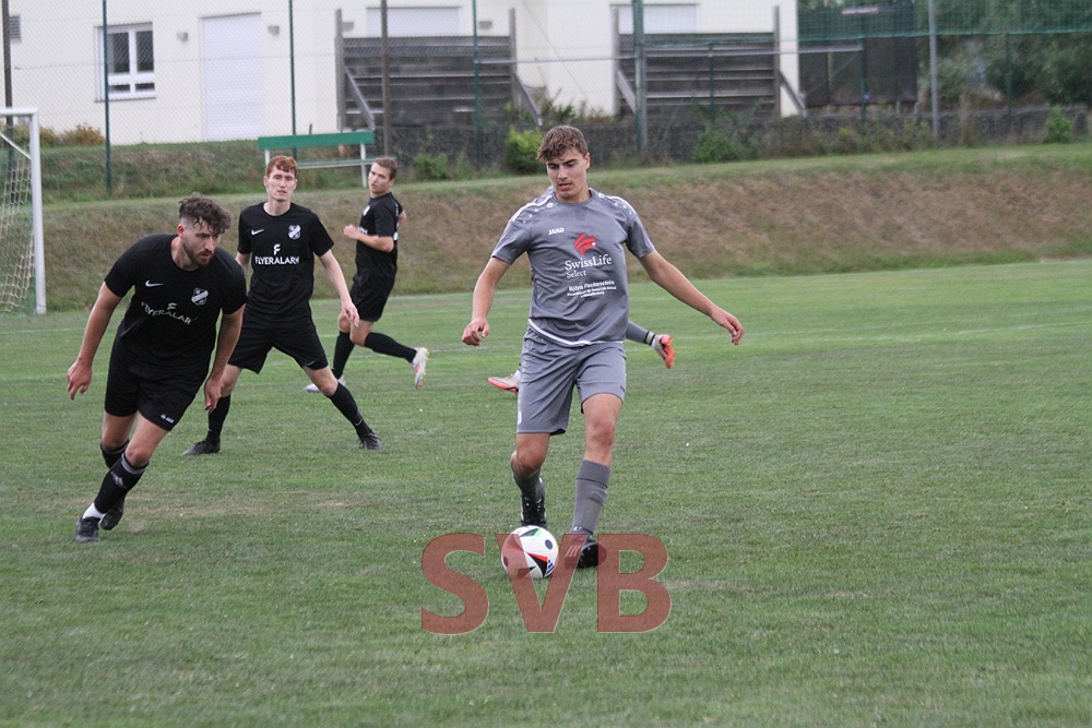 Aber die in grau spielenden SGler waren von Anfang an konzentriert, traten als Mannschaft auf und hätten nach acht Minuten in Führung gehen müssen. Nach einer guten Flanke von Julian Roth stieg Lars Liebler am Elferpunkt relativ frei hoch und köpfte aber genau auf Keeper Marschall. Marschall sollte auch einen Unsicherheitsfaktor der Gäste darstellen, von denen über das gesamte Spiel überraschend wenig kam.
