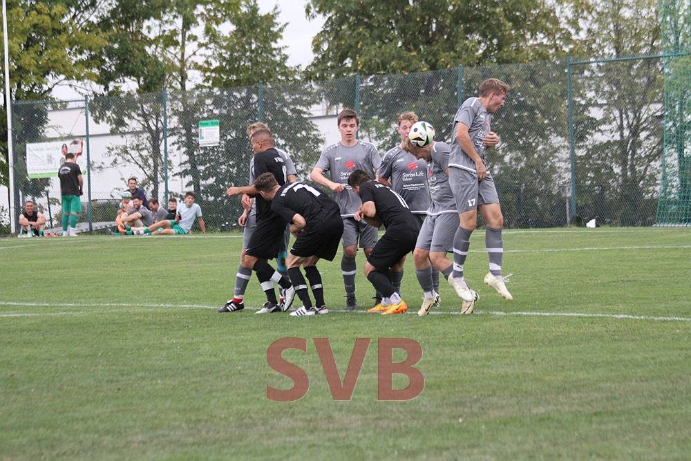 Dies setzte offenbar neue Kräfte bei der SG frei und nur kurz darauf sorgte Julian Roth mit einem Sprint über den halben Platz für ein Raunen unter den knapp 130 Zuschauern, verpasste aber dann ein Abspiel auf Lars oder Steffen Schwab und blieb in zwei Verteidigern hängen. Drei Minuten später durfte die SG aber doch noch jubeln: Erneut stand Markus Weyer zum Freistoß bereit, brachte diesen halbhoch an der Mauer vorbei zu Domi Weisner, der den Ball wie ein echter Torjäger mit dem Rücken zum Tor annahm, sich drehte und den Torwart zur SG-Führung tunnelte.