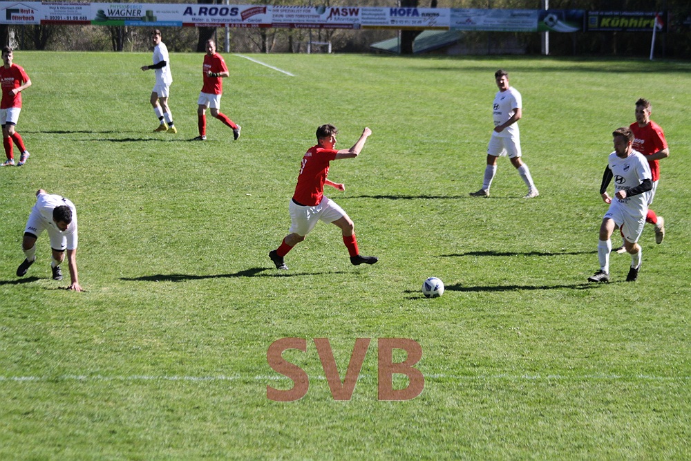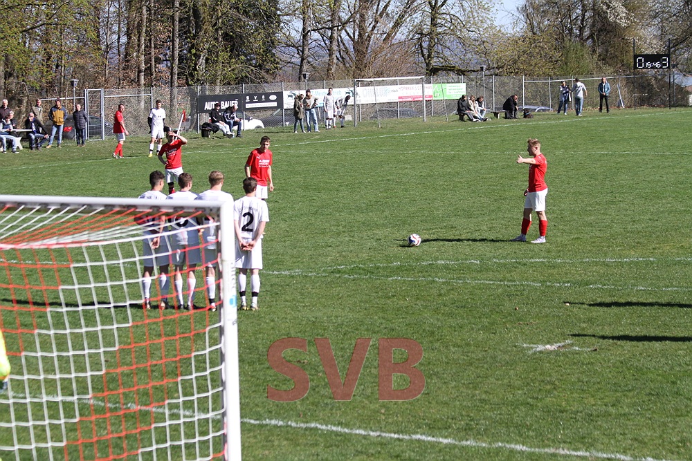 So hatten die in weiß spielenden Gäste von Anfang an wenig Mühe und bekamen nach knapp zehn Minuten einen Foulelfmeter zugesprochen, als Marc Weigand bei einer Ecke mit beiden Armen gegen Daniel Bufe zu Werke ging, und dieser das Geschenk natürlich dankend annahm und sich fallen ließ. SR Stolzenberger hatte freie Sicht und dadurch keine andere Wahl. Der „Gefoulte“ trat selbst an und verwandelte sicher zur frühen Gästeführung.