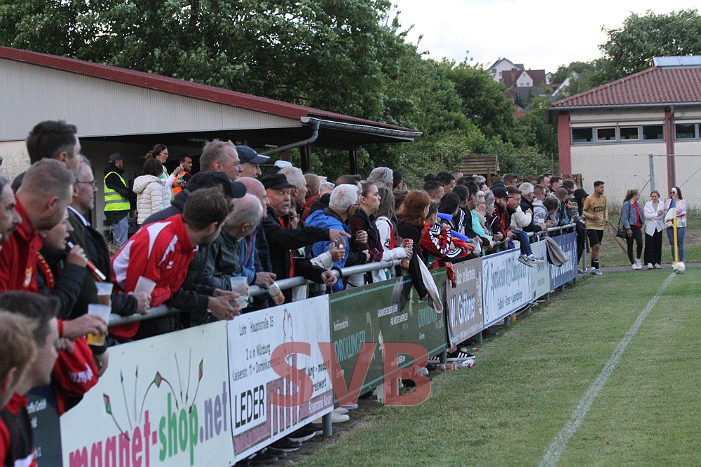 Der hervorragend leitende Schiedsrichter Manuel Meyer von der FG Marktbreit-Martinsheim pfiff zusammen mit seinem Gespann um 18:04 Uhr an. Schon nach drei Minuten kam Thurn an einen zweiten Ball und zündete aus gut 20 Metern Richtung Tor, zielte aber deutlich drüber. Aber ein Raunen ging bereits hier durch die zahlreichen SG-Fans, die sogar einen eigenen Fanbus vollmachten. Bereits an dieser Stelle ein Dank für die überragende Unterstützung!