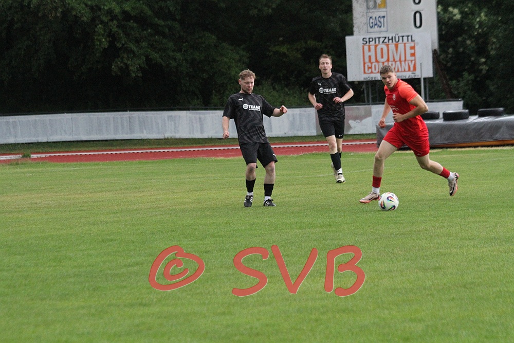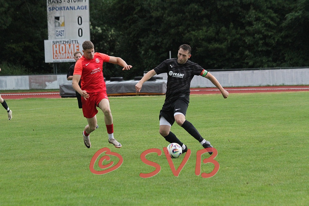 Zwei Zeigerumdrehungen (22.) später auch die erste SG-Chance, die es dann aber gleich in sich hatte. Felix Wiesmann, der den verletzten Luca Ningler ersetzte, steckte über Rechts auf den dadurch frei durchgebrochenen Jonas Rückert durch. An seinen Abschluss bekam Keeper Bauer gerade noch die Hände dran, so dass die Pille langsam Richtung Tor kullerte, aber knapp rechts vorbeiging.