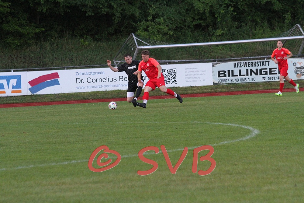Nach dem knappen, aber aufgrund der kämpferischen Leistung verdienten Sieg in der ersten Relegationsrunde gegen Schaippach, bei dem endlich mal wieder eine Mannschaft auf dem Platz stand, traf die SG in Runde Zwei auf den Unterbau der Bezirksliga-Mannschaft des SSV Kitzingen. Von dieser wirkte auch Fabian Sillig als Verstärkung mit. Gespielt wurde auf dem Waldsportplatz der TG Höchberg bei richtigem Fritz-Walter-Wetter, so dass dementsprechend lange nicht so viele Zuschauer wie noch am Sonntag in Steinfeld anwesend waren. Für ein Mittwochabend-Spiel bei Schietwetter aber mit 400 Zahlenden immer noch sehr viele, vor allem weil davon gefühlt 85% aus dem Grund waren. Auch der Fanbus, den beide Vereine wieder kostenfrei für die Fans übernahmen, wurde wieder sehr gut angenommen.