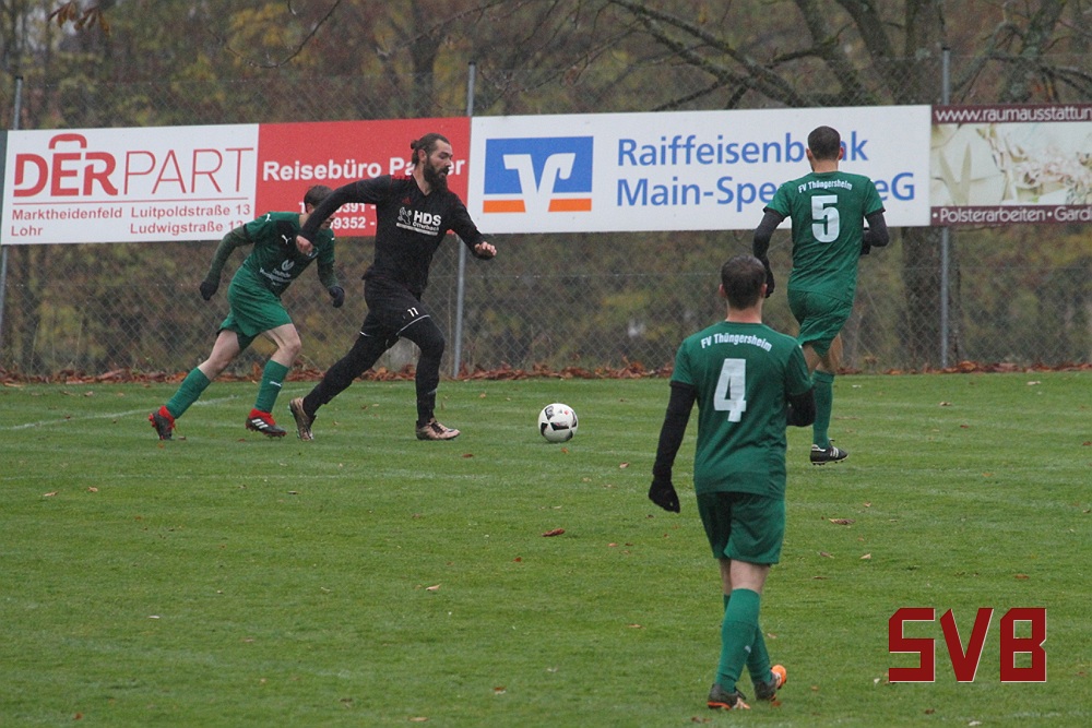 Im schweren Spiel gegen die drittplatzierten Gäste aus Thüngersheim fielen alle möglichen Torhüter aus, so dass Dominik Beeger kurzerhand zwischen den Pfosten einsprang. Auch ansonsten sah die Personallage eher dürftig aus, so dass Florian Lutz einige so nicht zu erwartende Kräfte aus dem Hut zauberte.