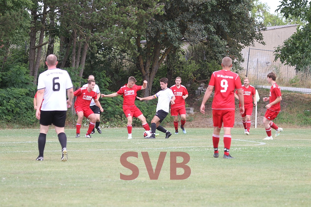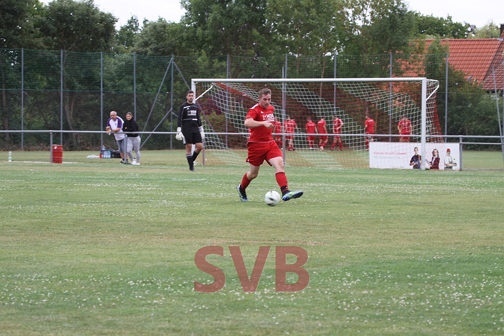 So konnte Jan Hubert schon nach zwölf Minuten, als Max Amthor SVB-Verteidiger Sebastian „Bebbo“ Leimeister über seine linke Seite überlief und nach innen passte, flach zum 1:0 einnetzen.