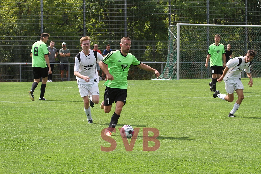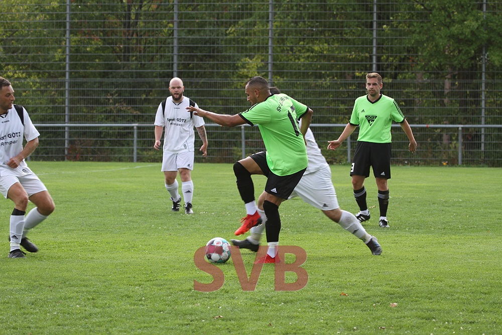 Die Heimelf hatte zwar von Anfang an einen recht ordentlichen Zug Richtung SVB-Gehäuse, verzettelte sich aber meist vor dem Strafraum. Der SVB hingegen ging gleich mit seiner ersten richtigen Chance in Führung, als Routinier Roland Liebler einen super Schnittstellenpass auf den gestarteten Davor Miskovic spielte. Dieser zog noch vor dem Strafraum ab und traf damit zum 0:1.